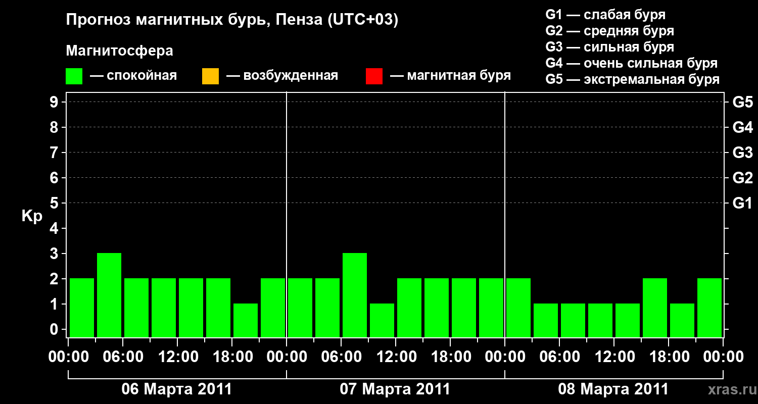 Прогноз магнитных бурь в Пензе — 6 марта 2011 года