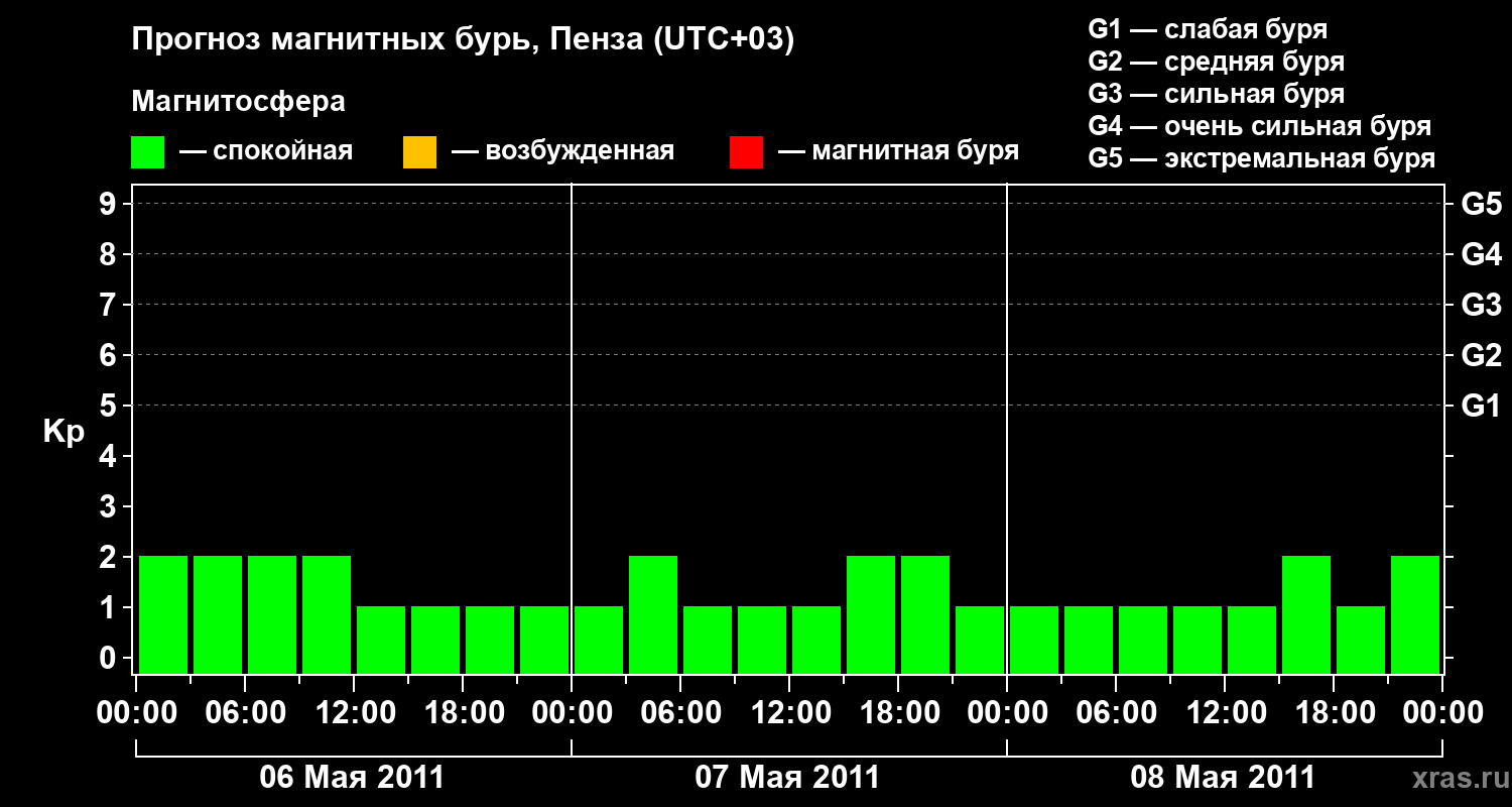 Прогноз магнитных бурь в Пензе — 6 мая 2011 года