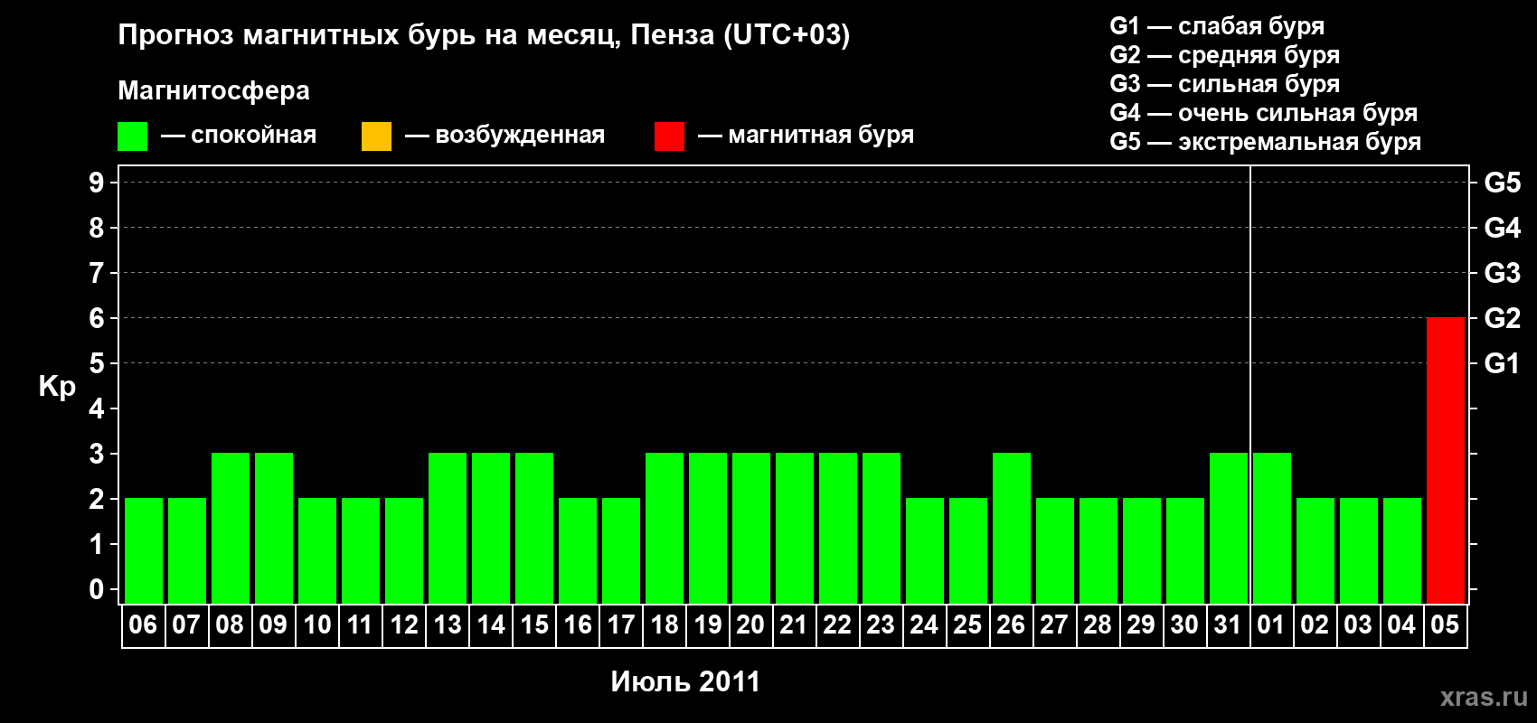 Прогноз магнитных бурь в Пензе — 6 июля 2011 года