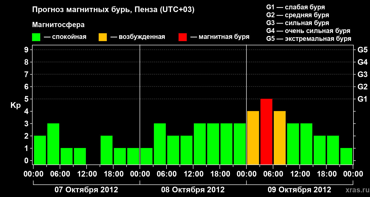 Прогноз магнитных бурь в Пензе на 7 октября 2012 года