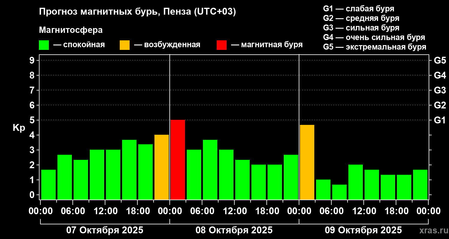 Прогноз магнитных бурь в Пензе — 7 октября 2025 года