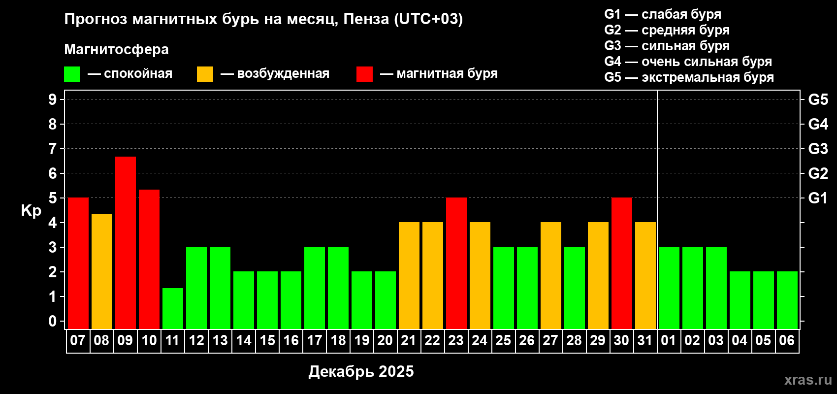 Прогноз магнитных бурь в Пензе — 7 декабря 2025 года