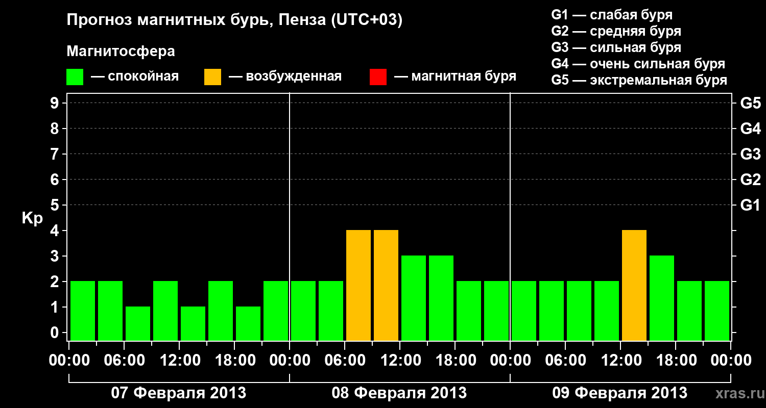 Прогноз магнитных бурь в Пензе — 7 февраля 2013 года