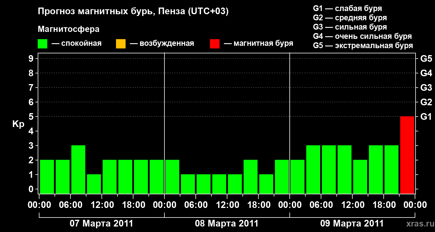 Прогноз магнитных бурь в Пензе — 7 марта 2011 года