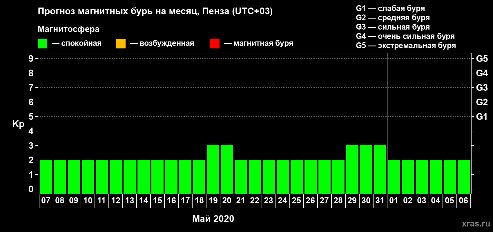 Прогноз магнитных бурь в Пензе — 7 мая 2020 года