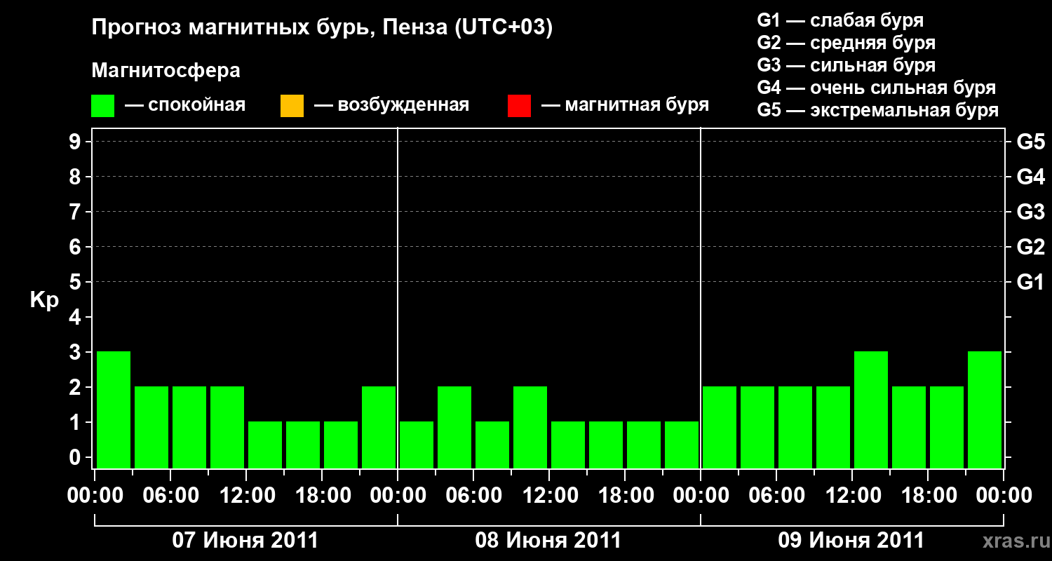 Прогноз магнитных бурь в Пензе — 7 июня 2011 года
