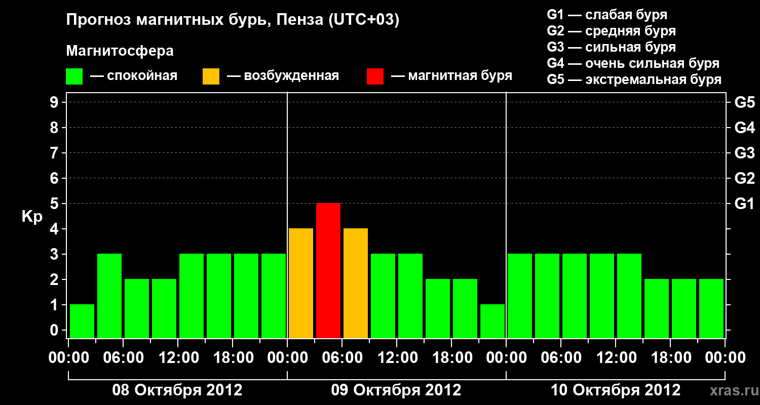 Прогноз магнитных бурь в Пензе на 8 октября 2012 года