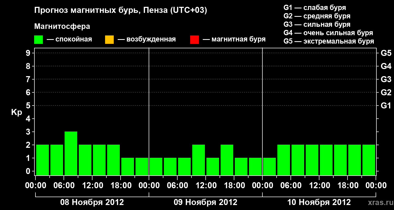 Прогноз магнитных бурь в Пензе — 8 ноября 2012 года