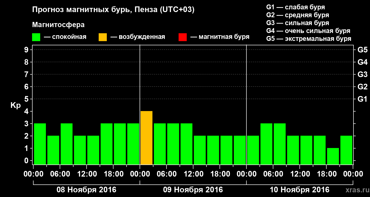 Прогноз магнитных бурь в Пензе — 8 ноября 2016 года