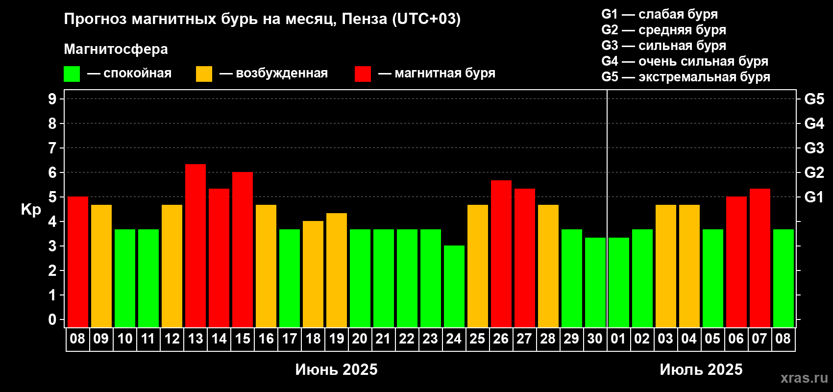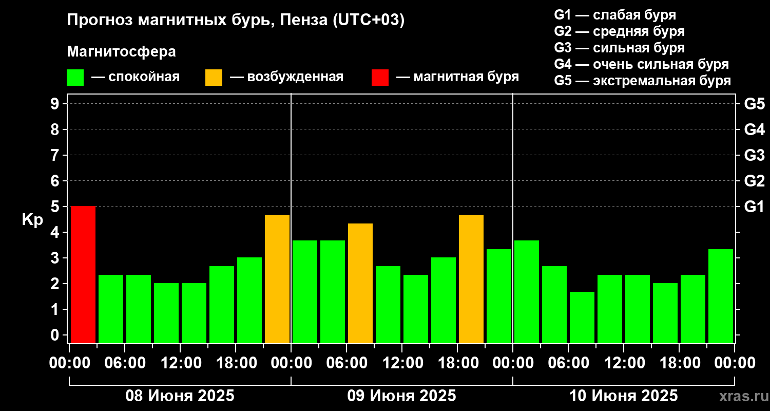 Прогноз магнитных бурь в Пензе — 8 июня 2025 года