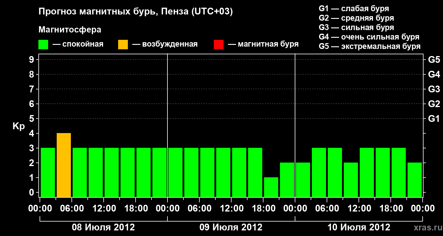 Прогноз магнитных бурь в Пензе на 8 июля 2012 года
