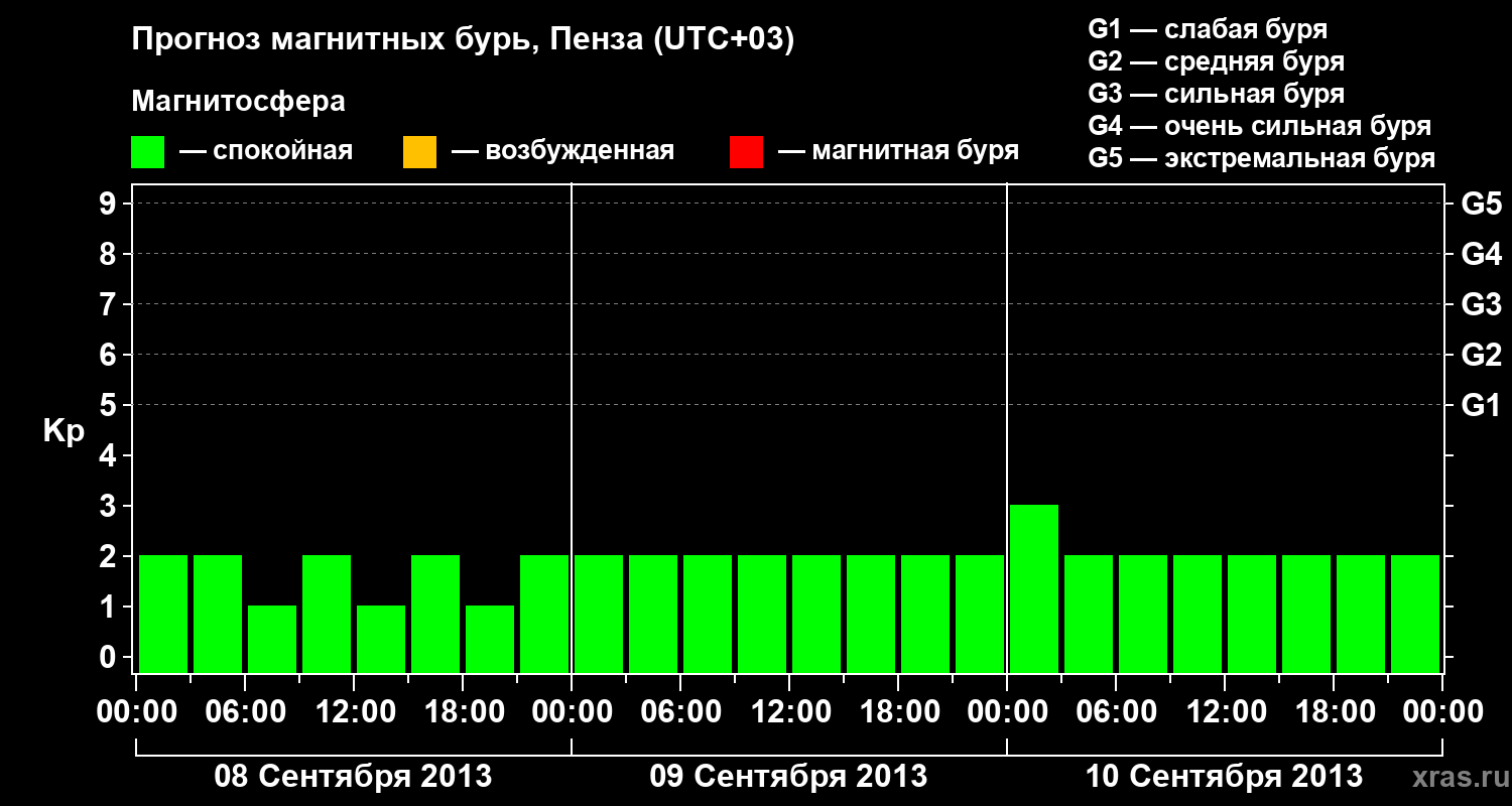 Прогноз магнитных бурь в Пензе — 8 сентября 2013 года