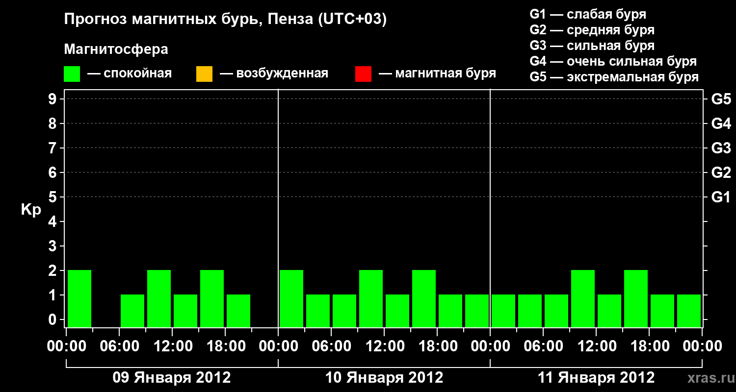 Прогноз магнитных бурь в Пензе — 9 января 2012 года