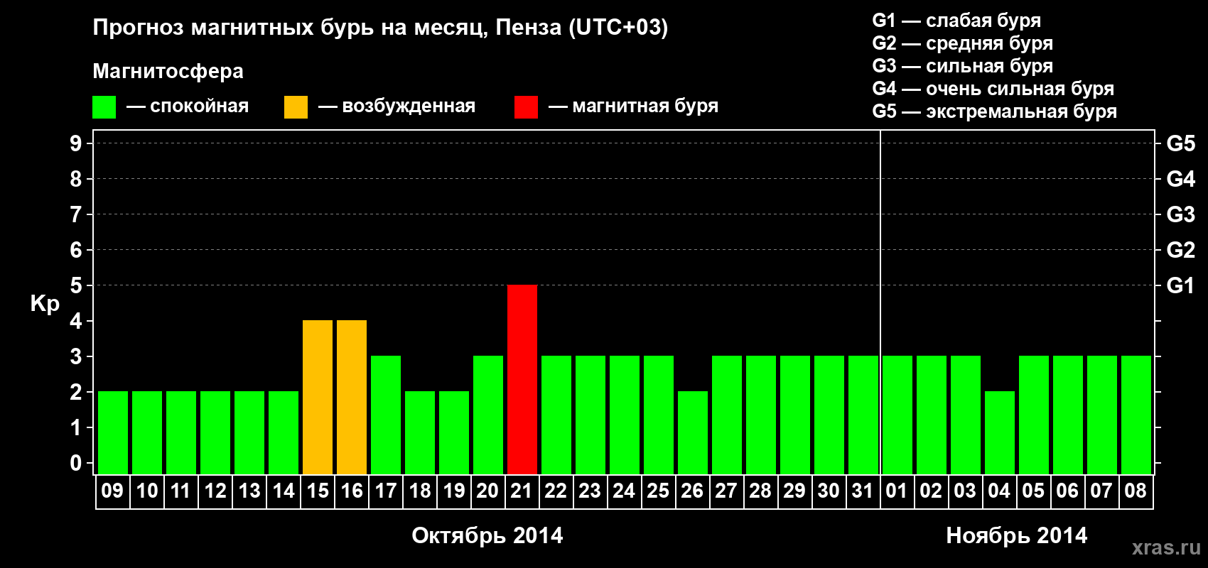 Прогноз магнитных бурь в Пензе — 9 октября 2014 года