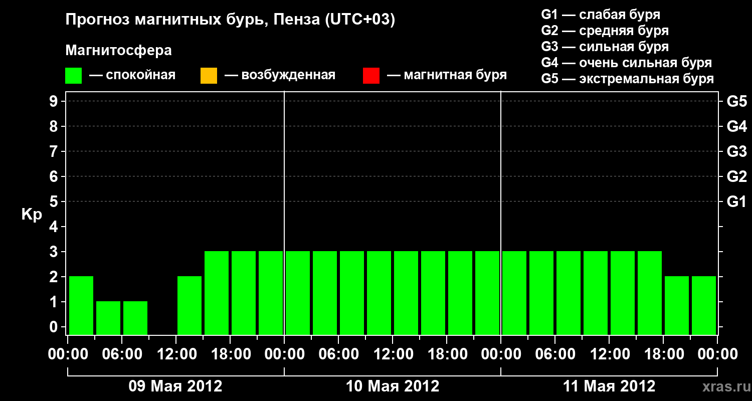 Прогноз магнитных бурь в Пензе — 9 мая 2012 года