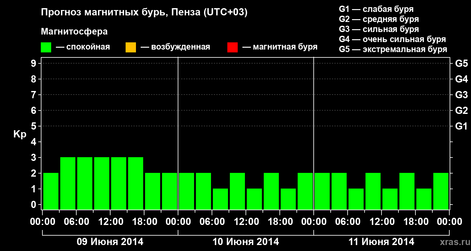 Прогноз магнитных бурь в Пензе — 9 июня 2014 года