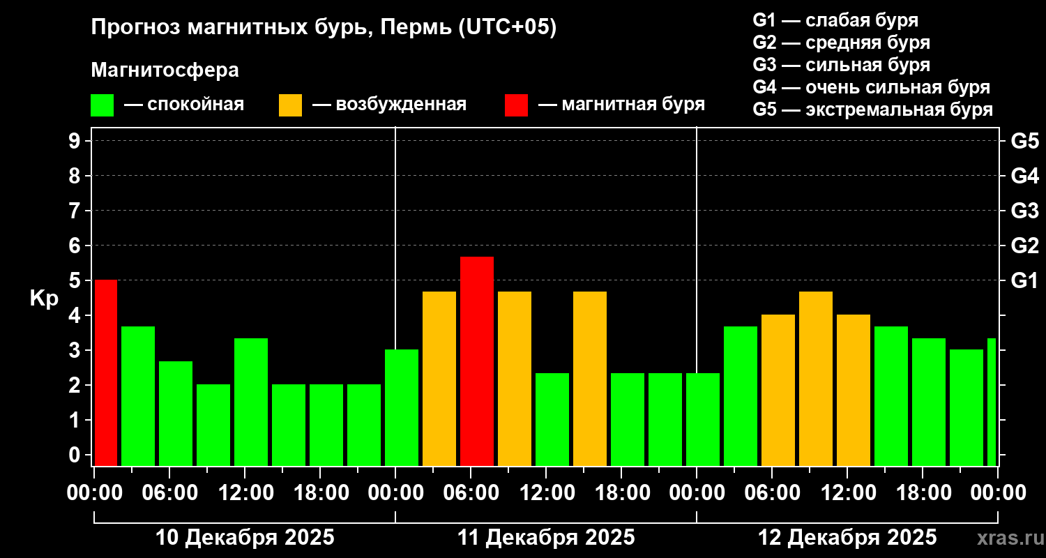 Прогноз магнитных бурь Перми — 10 декабря 2025 года