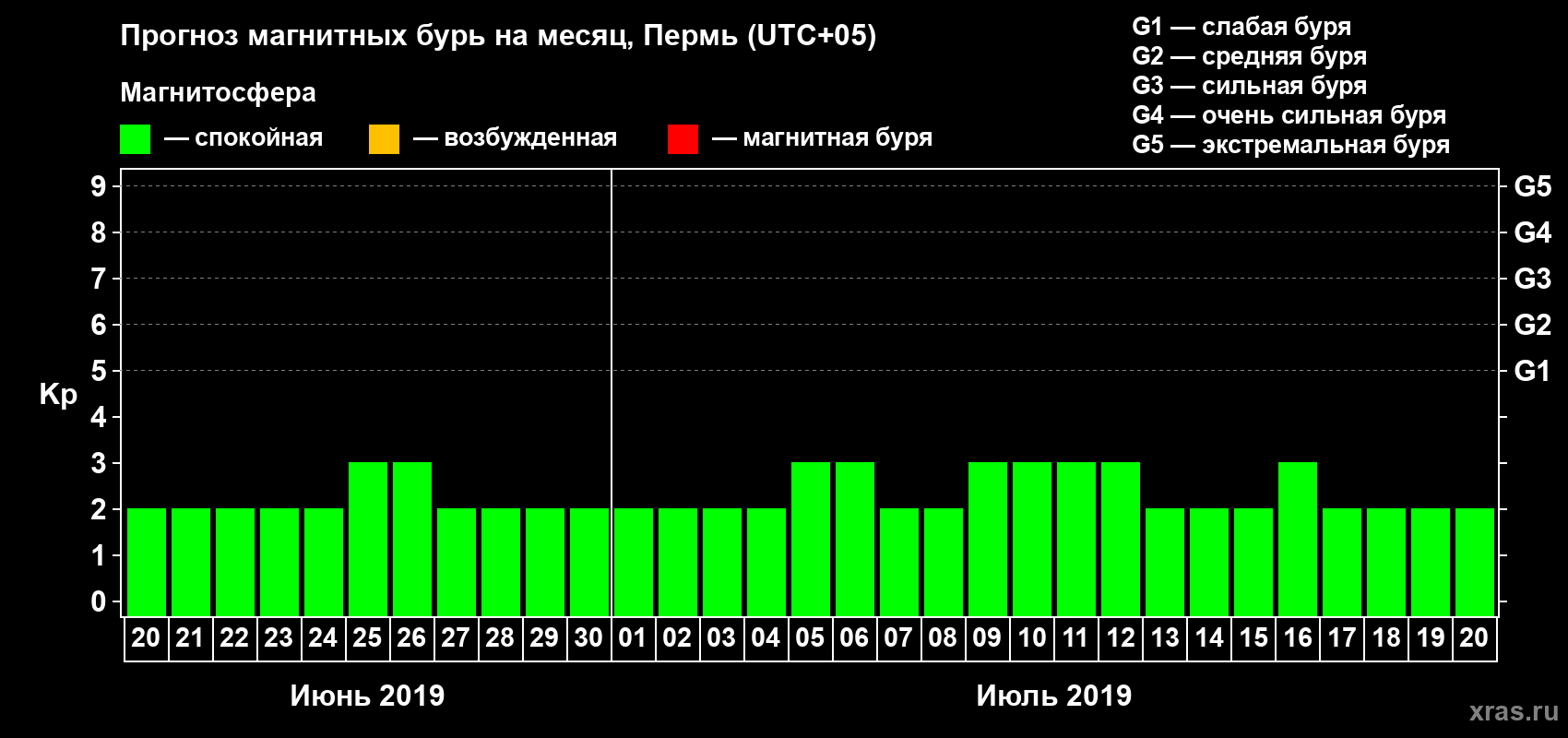Прогноз магнитных бурь Перми — 20 июня 2019 года