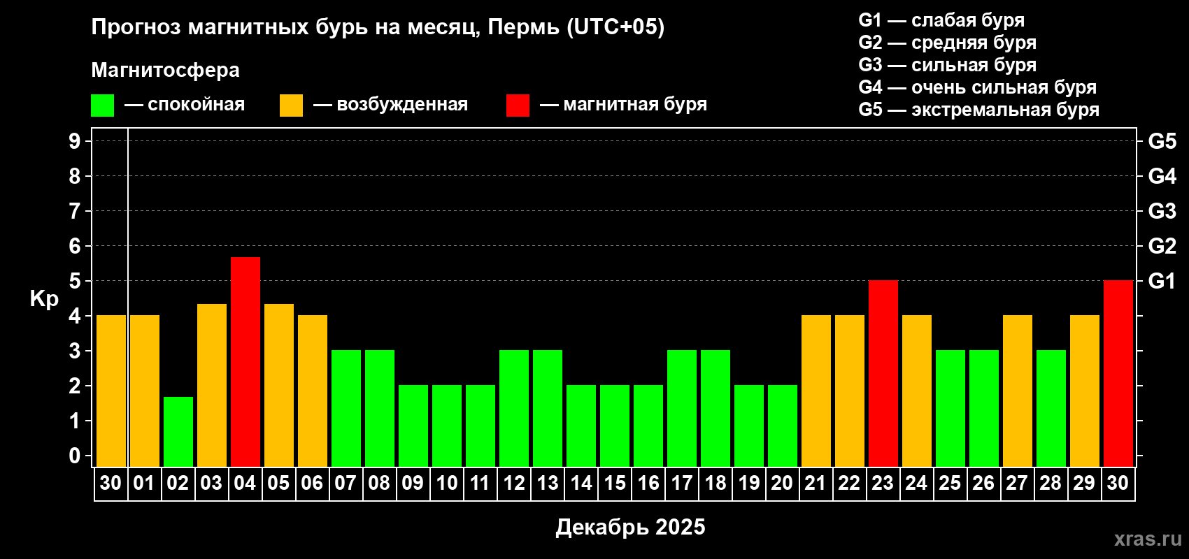 Прогноз магнитных бурь Перми — 30 ноября 2025 года