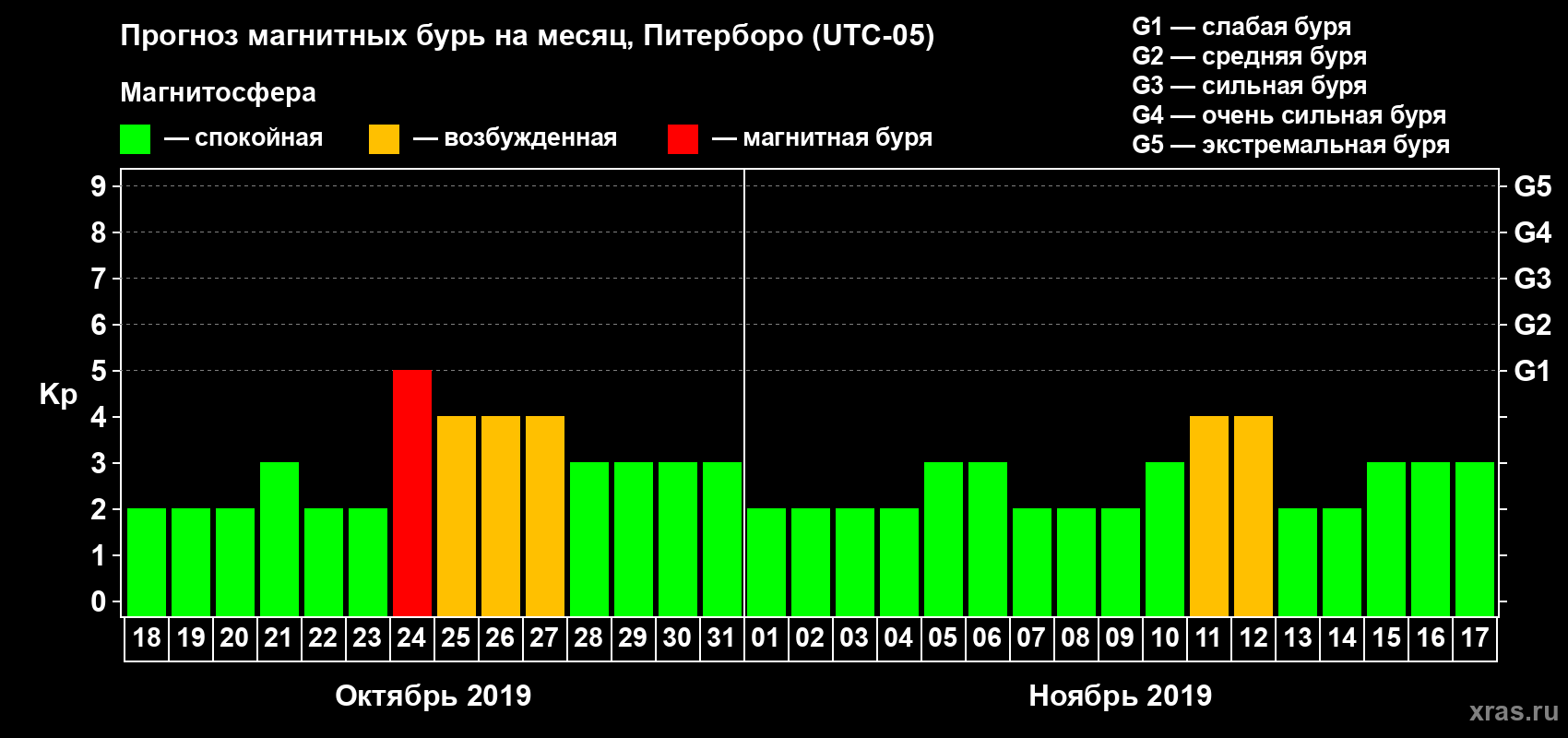 Прогноз магнитных бурь Питерборо — 18 октября 2019 года