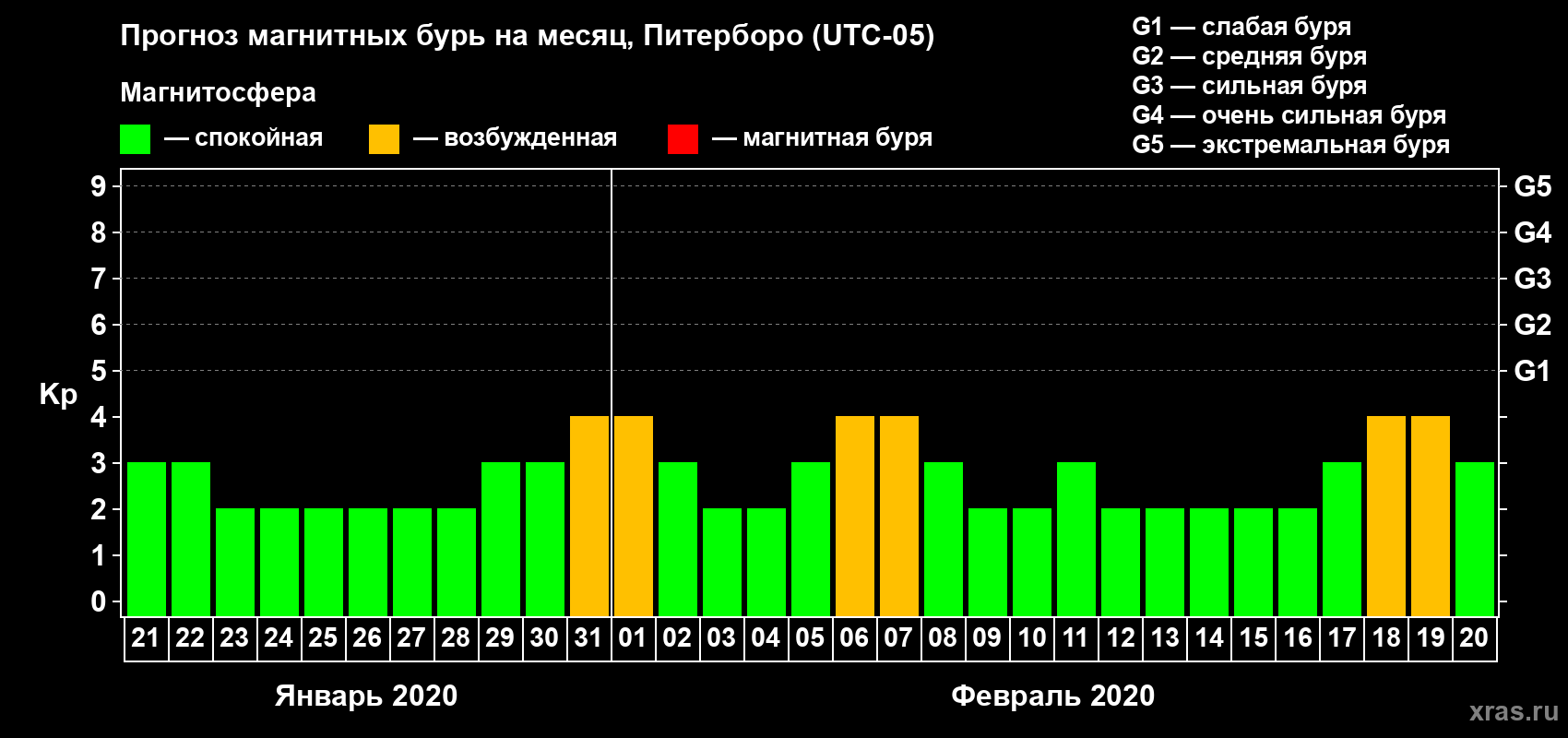 Прогноз магнитных бурь Питерборо — 21 января 2020 года