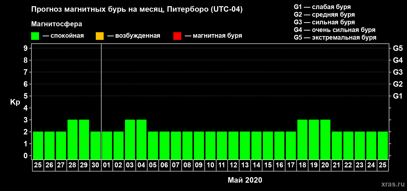 Прогноз магнитных бурь Питерборо — 25 апреля 2020 года