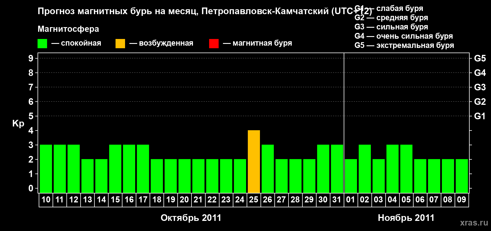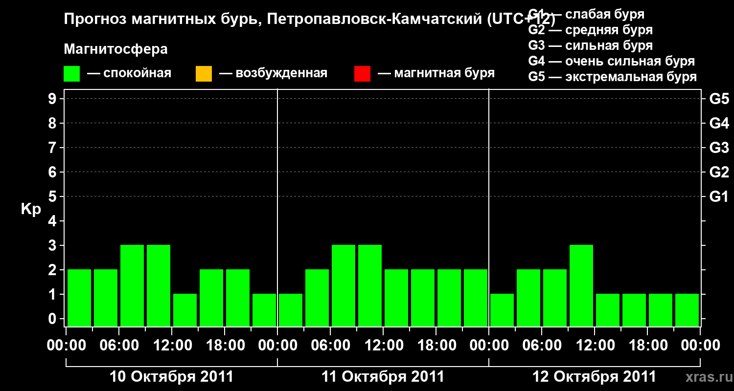 Прогноз магнитных бурь Петропавловске-Камчатском — 10 октября 2011 года