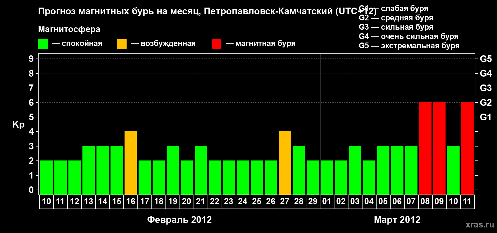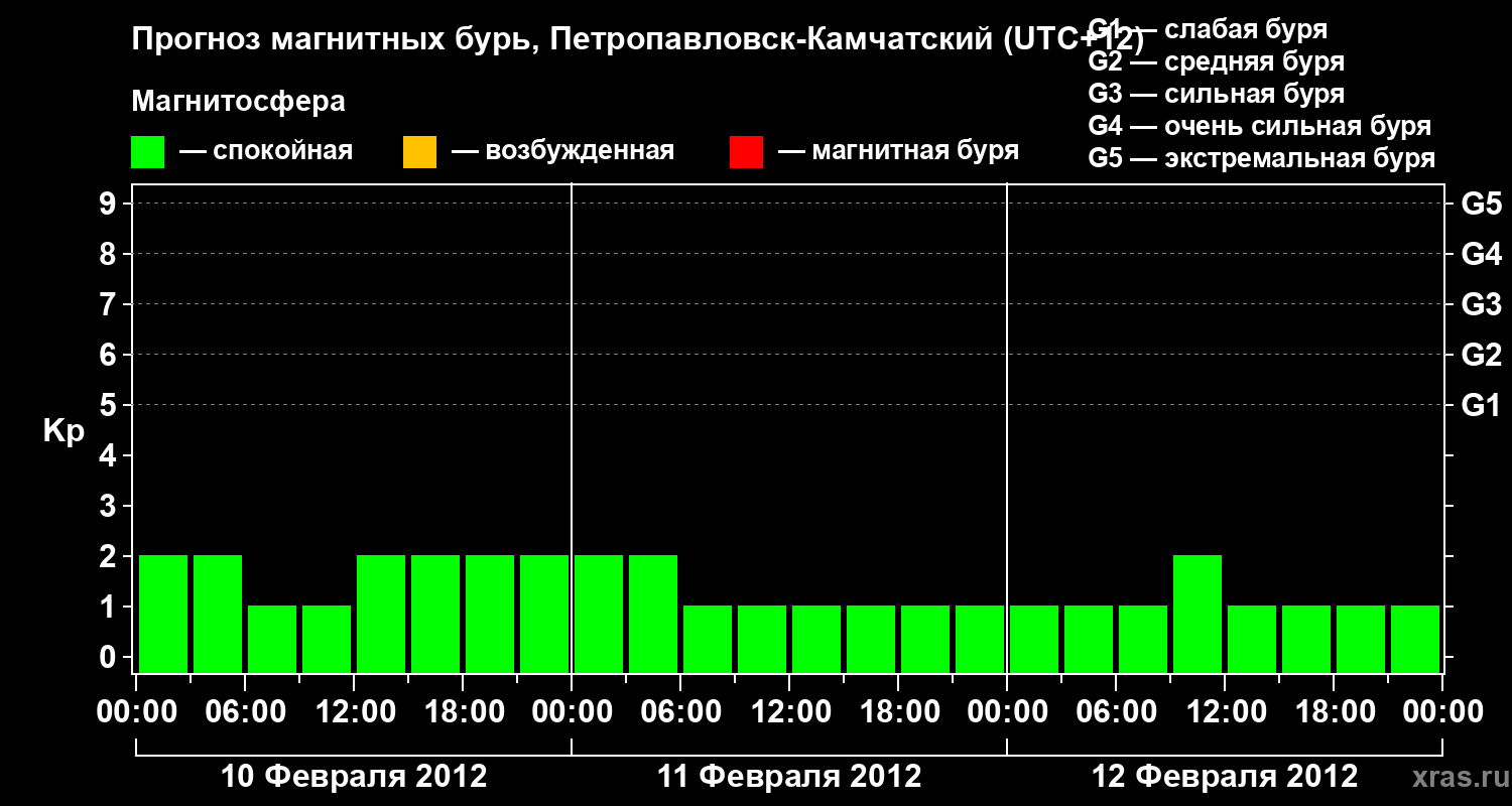Прогноз магнитных бурь Петропавловске-Камчатском — 10 февраля 2012 года