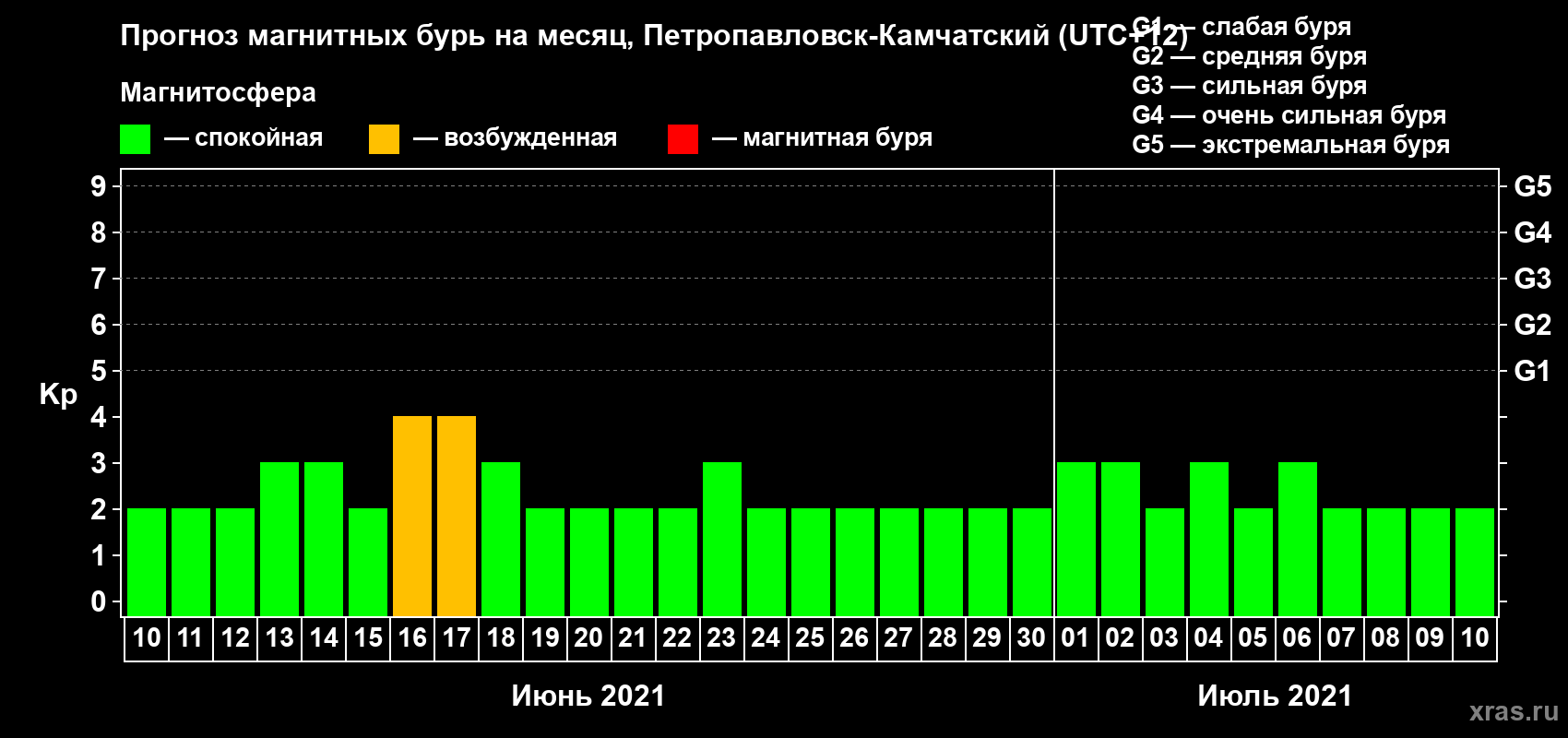 Прогноз магнитных бурь Петропавловске-Камчатском — 10 июня 2021 года
