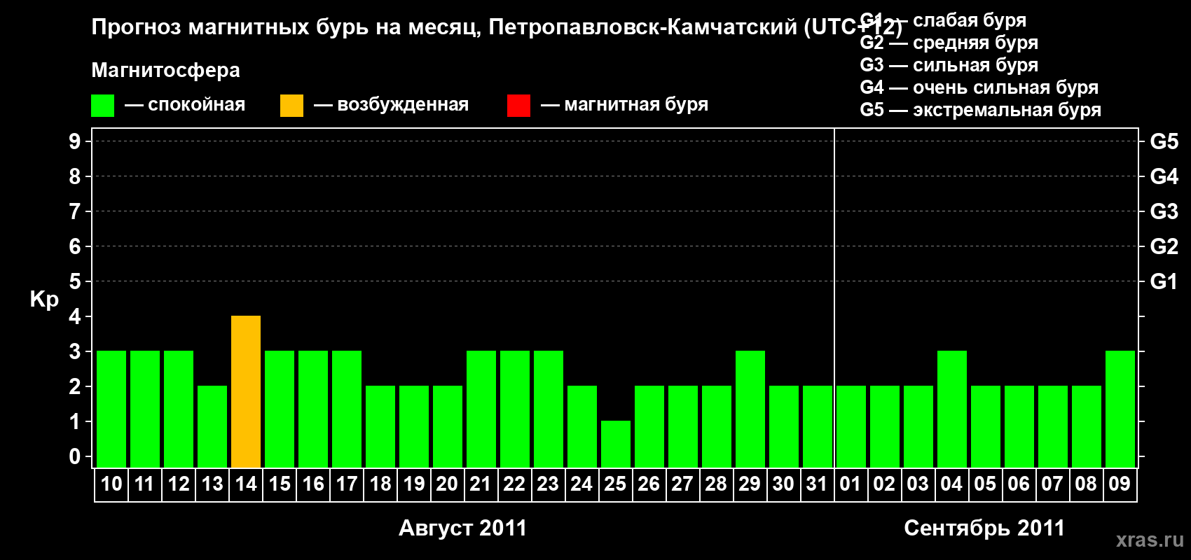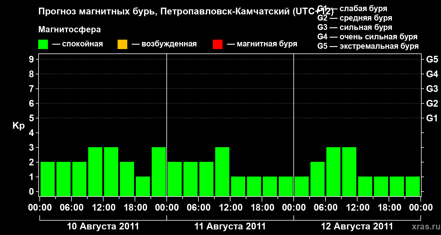 Прогноз магнитных бурь Петропавловске-Камчатском — 10 августа 2011 года
