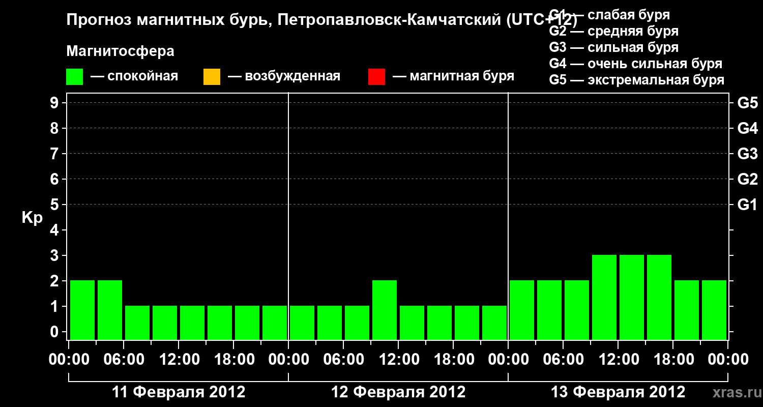 Прогноз магнитных бурь Петропавловске-Камчатском — 11 февраля 2012 года