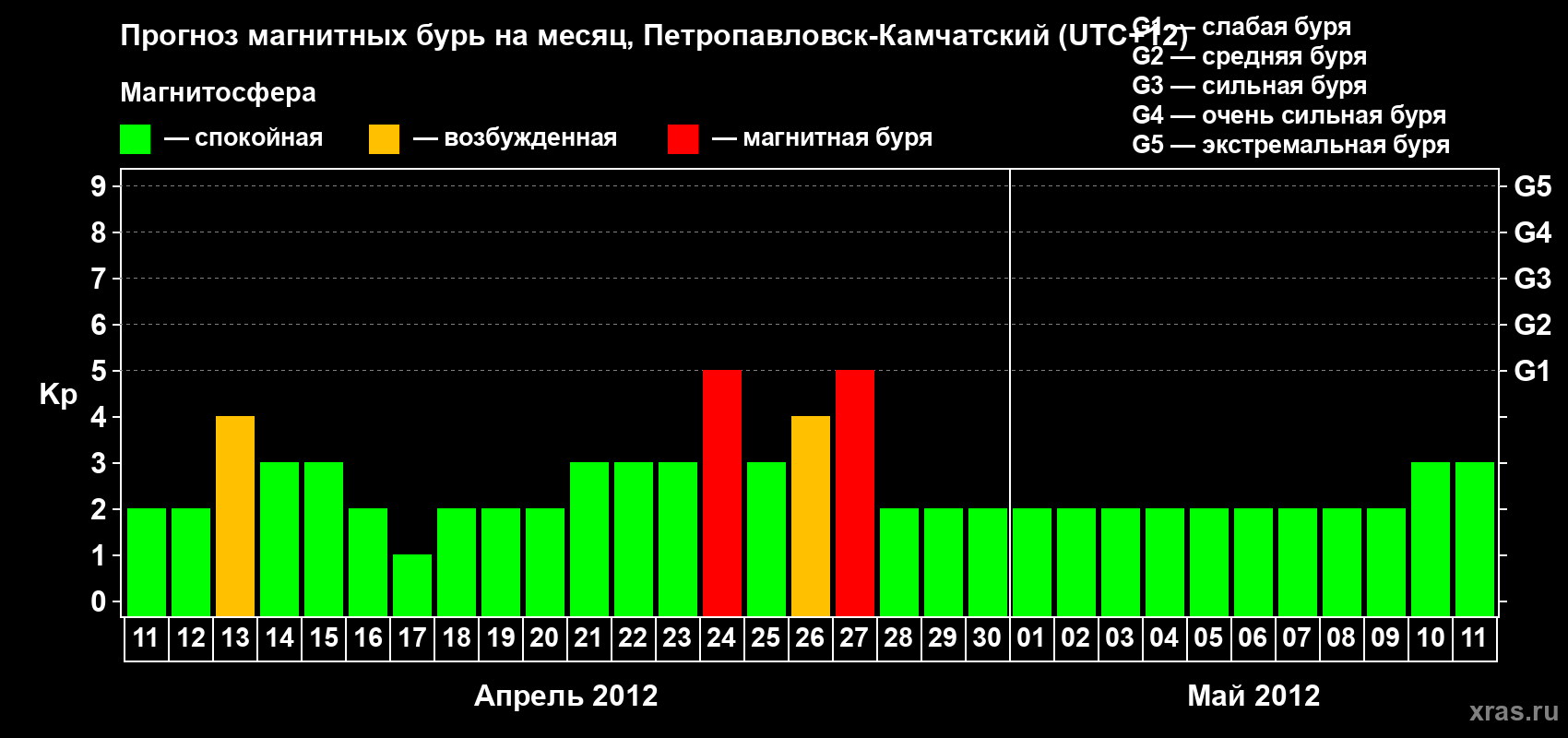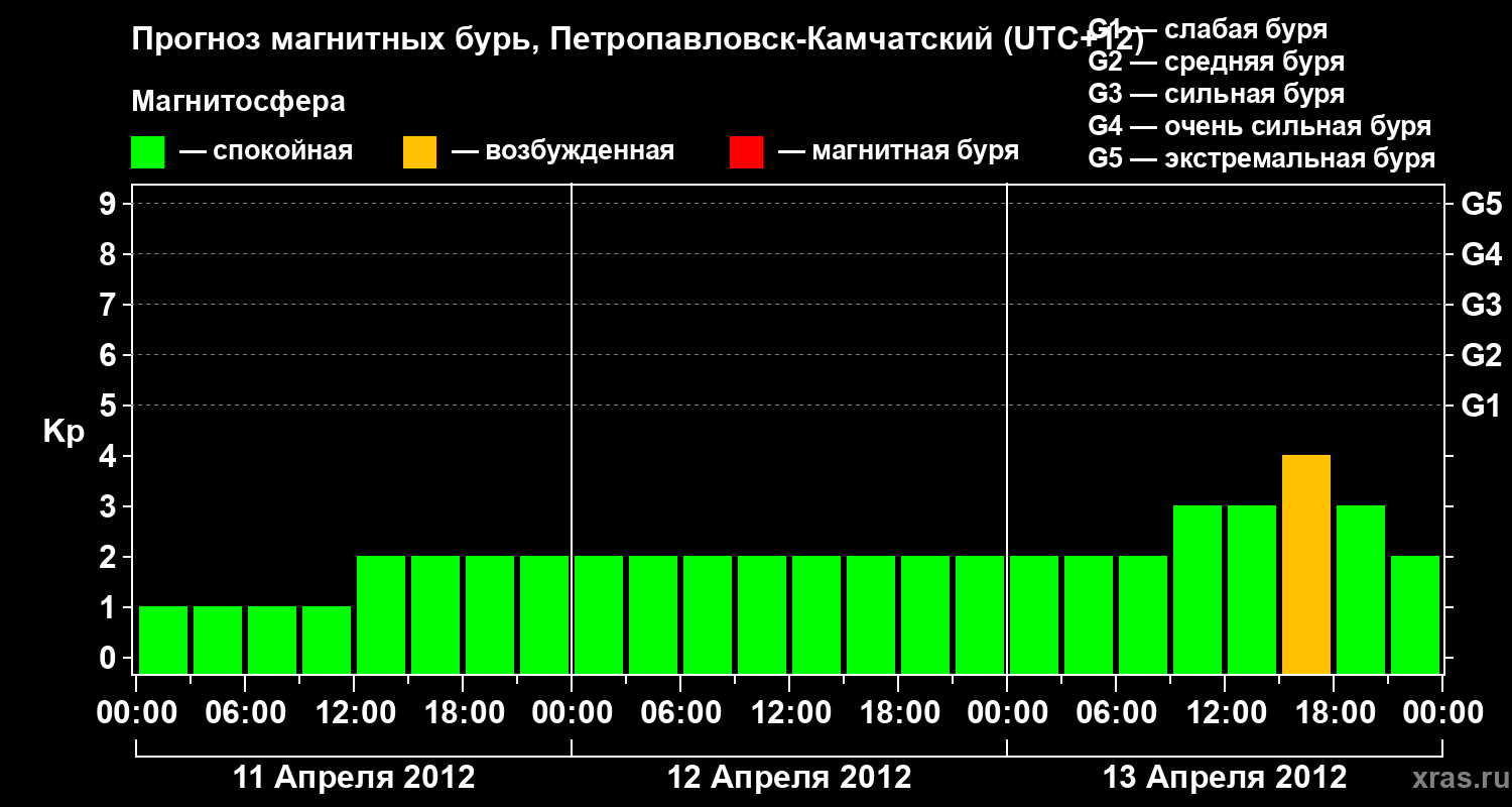 Прогноз магнитных бурь Петропавловске-Камчатском — 11 апреля 2012 года