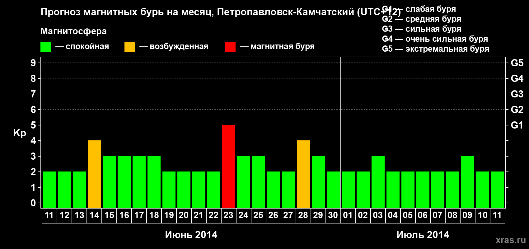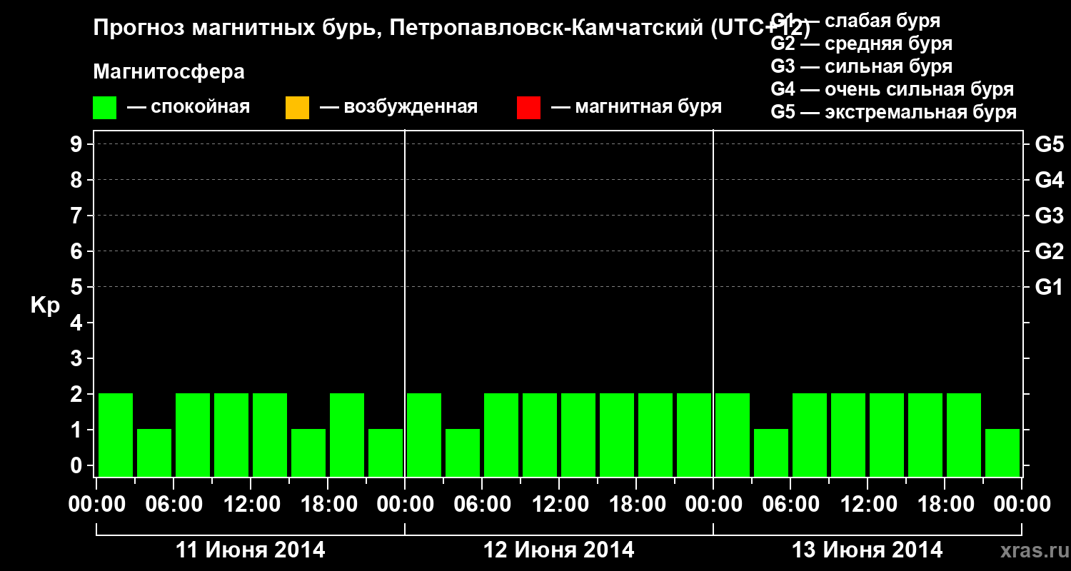 Прогноз магнитных бурь Петропавловске-Камчатском — 11 июня 2014 года
