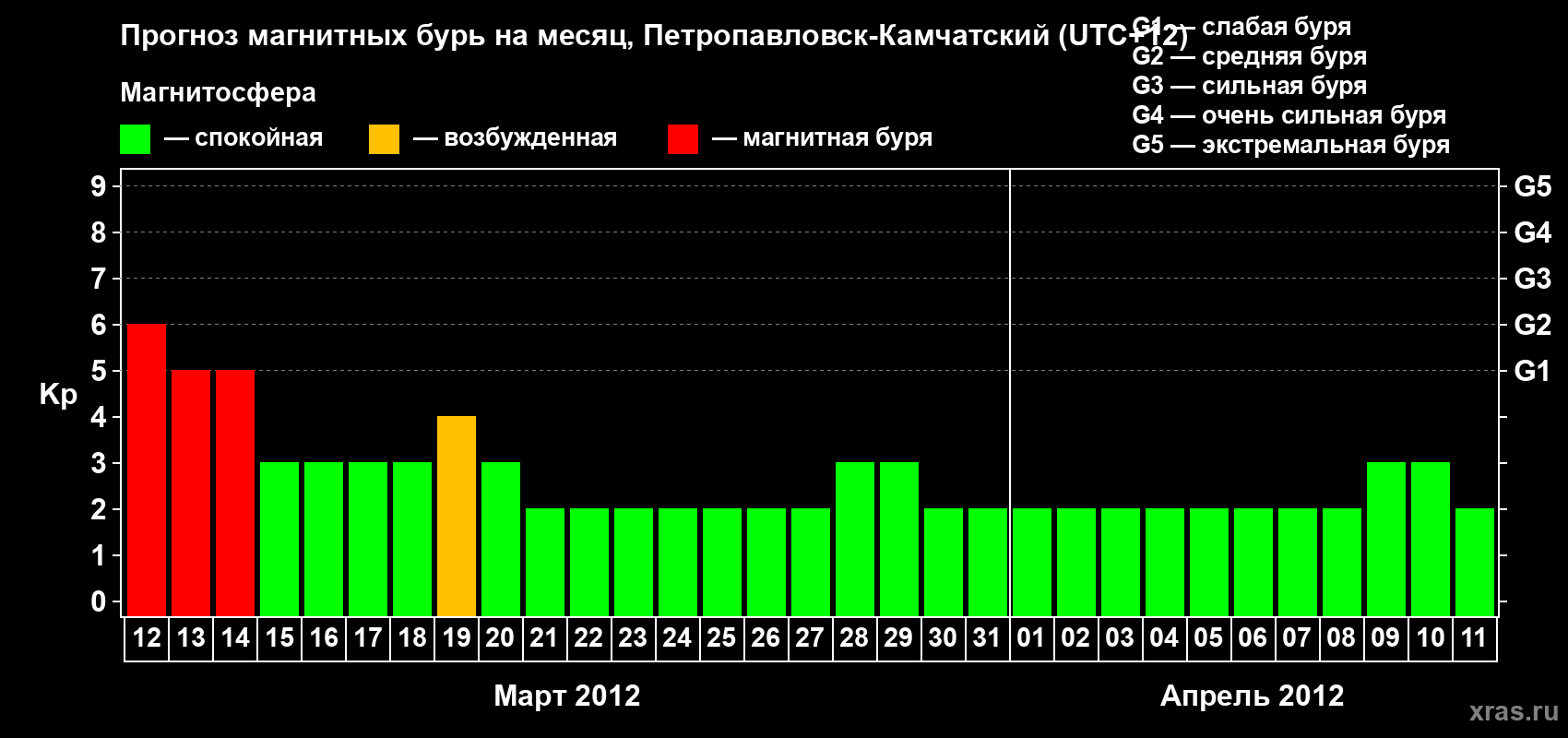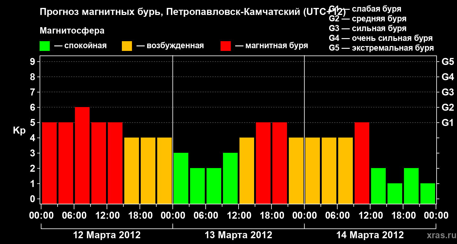 Прогноз магнитных бурь Петропавловске-Камчатском — 12 марта 2012 года