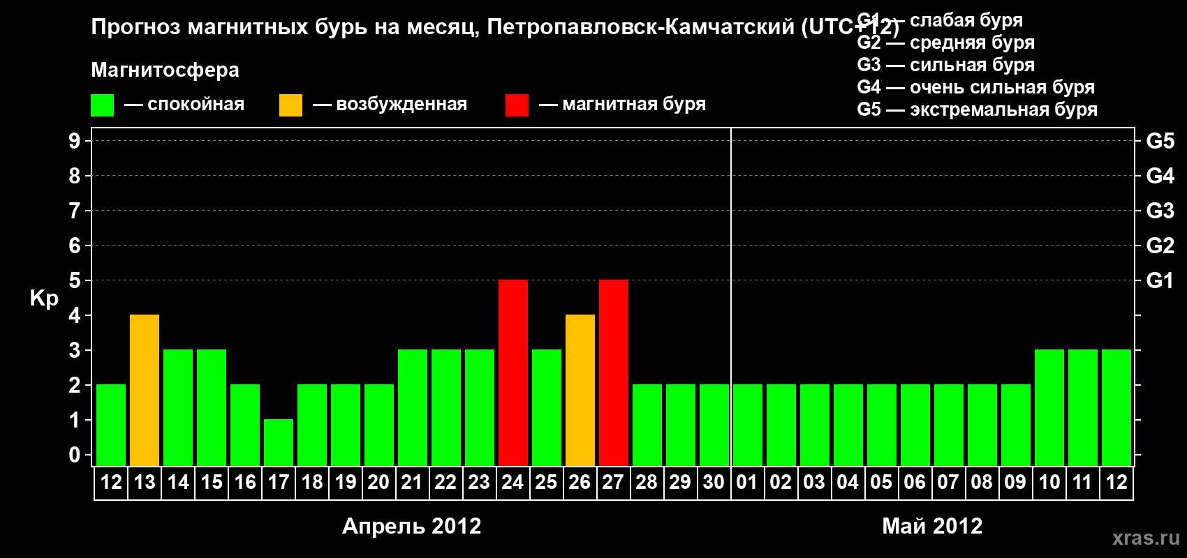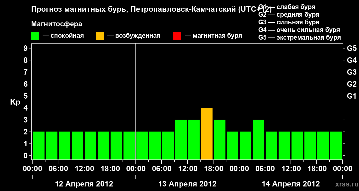 Прогноз магнитных бурь Петропавловске-Камчатском — 12 апреля 2012 года