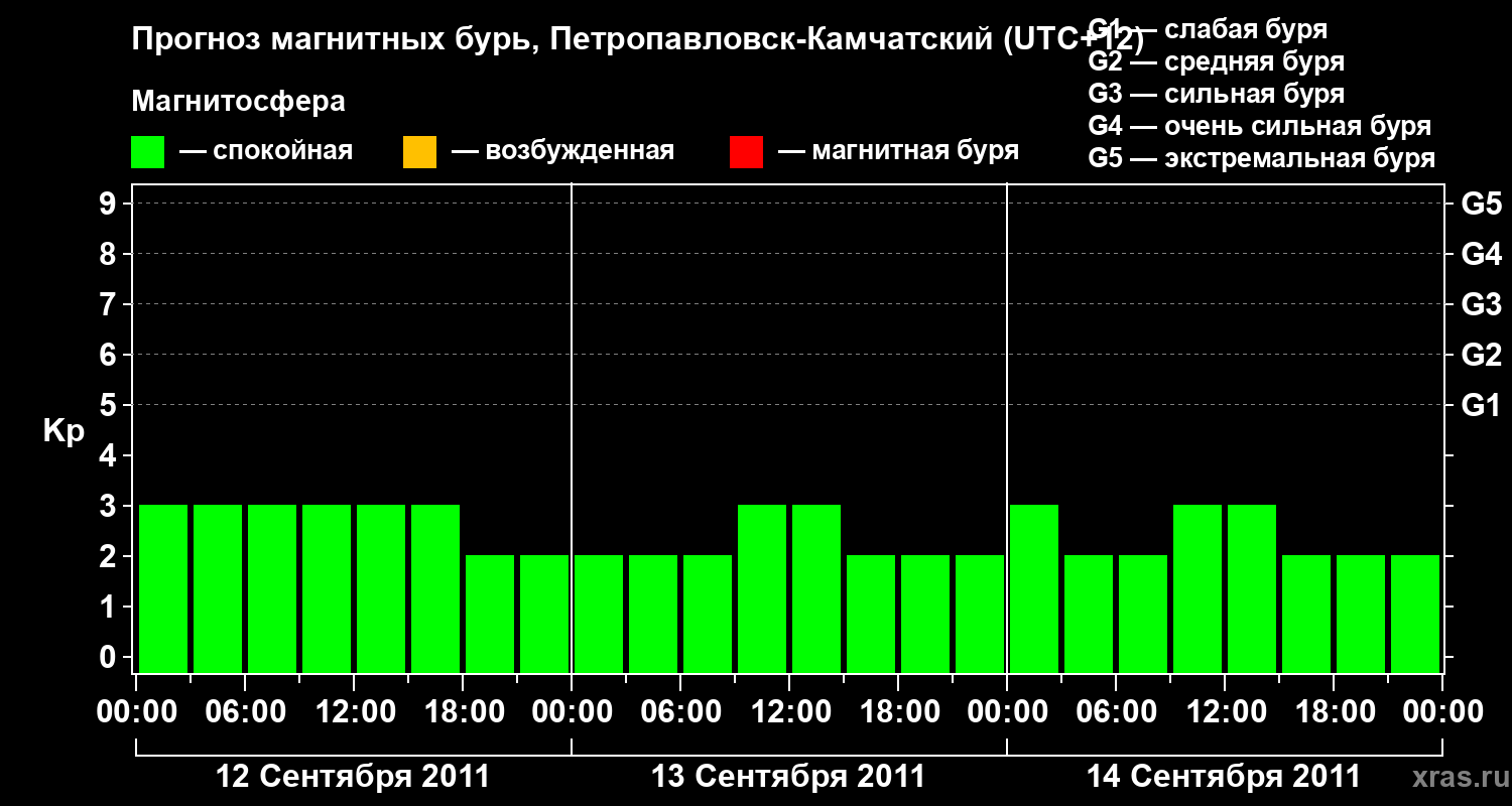 Прогноз магнитных бурь Петропавловске-Камчатском — 12 сентября 2011 года