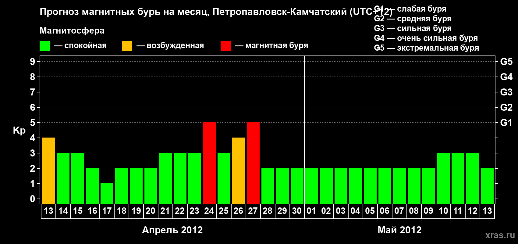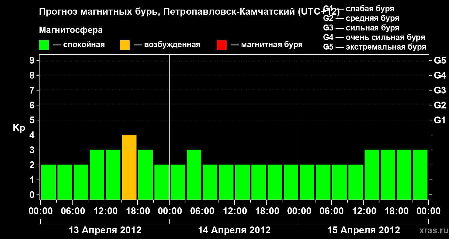 Прогноз магнитных бурь Петропавловске-Камчатском — 13 апреля 2012 года