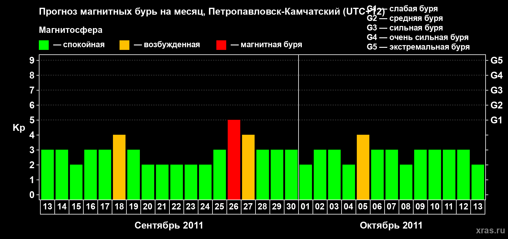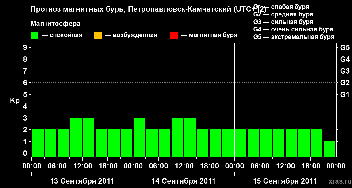 Прогноз магнитных бурь Петропавловске-Камчатском — 13 сентября 2011 года