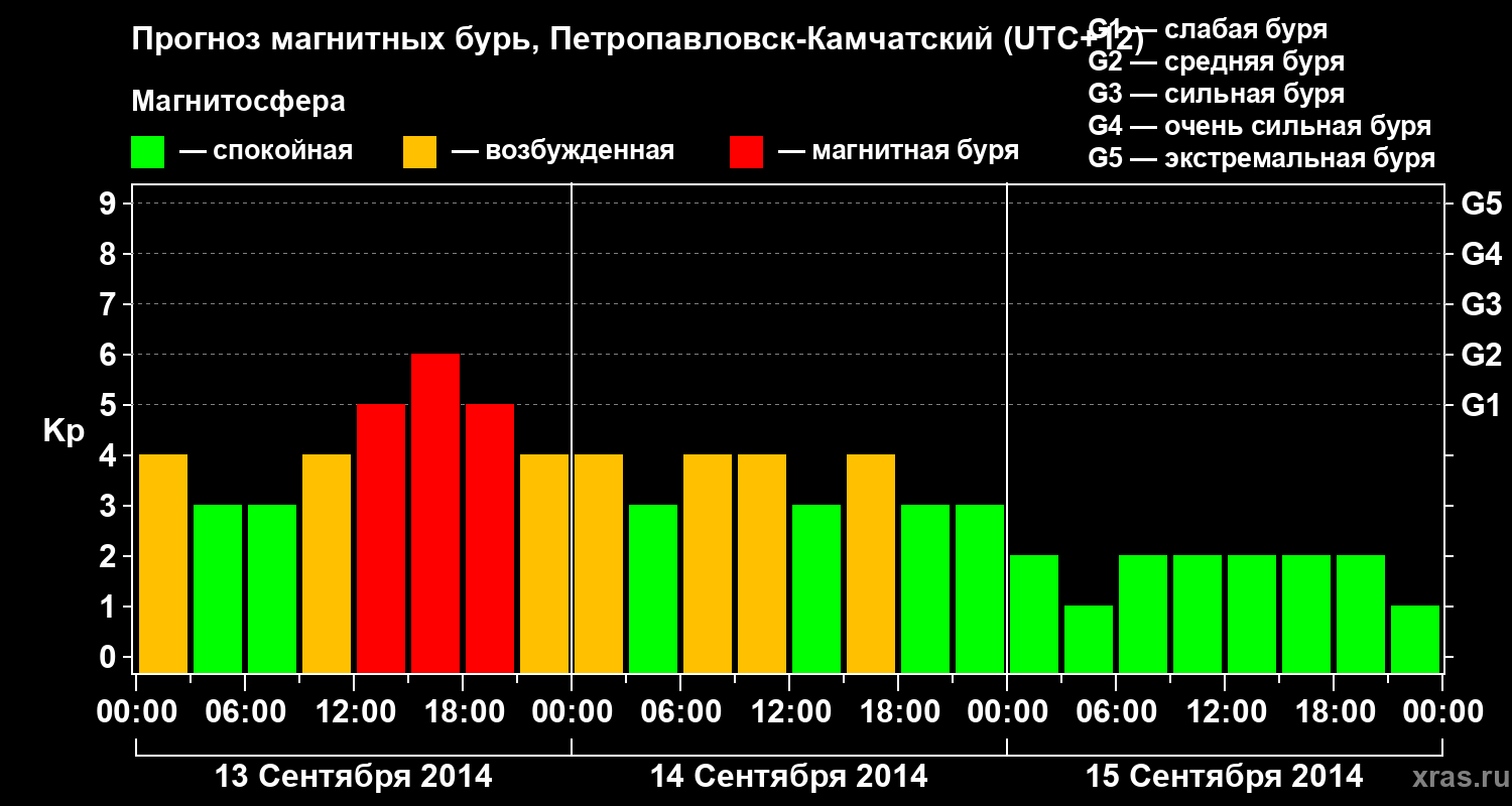 Прогноз магнитных бурь Петропавловске-Камчатском на 13 сентября 2014 года