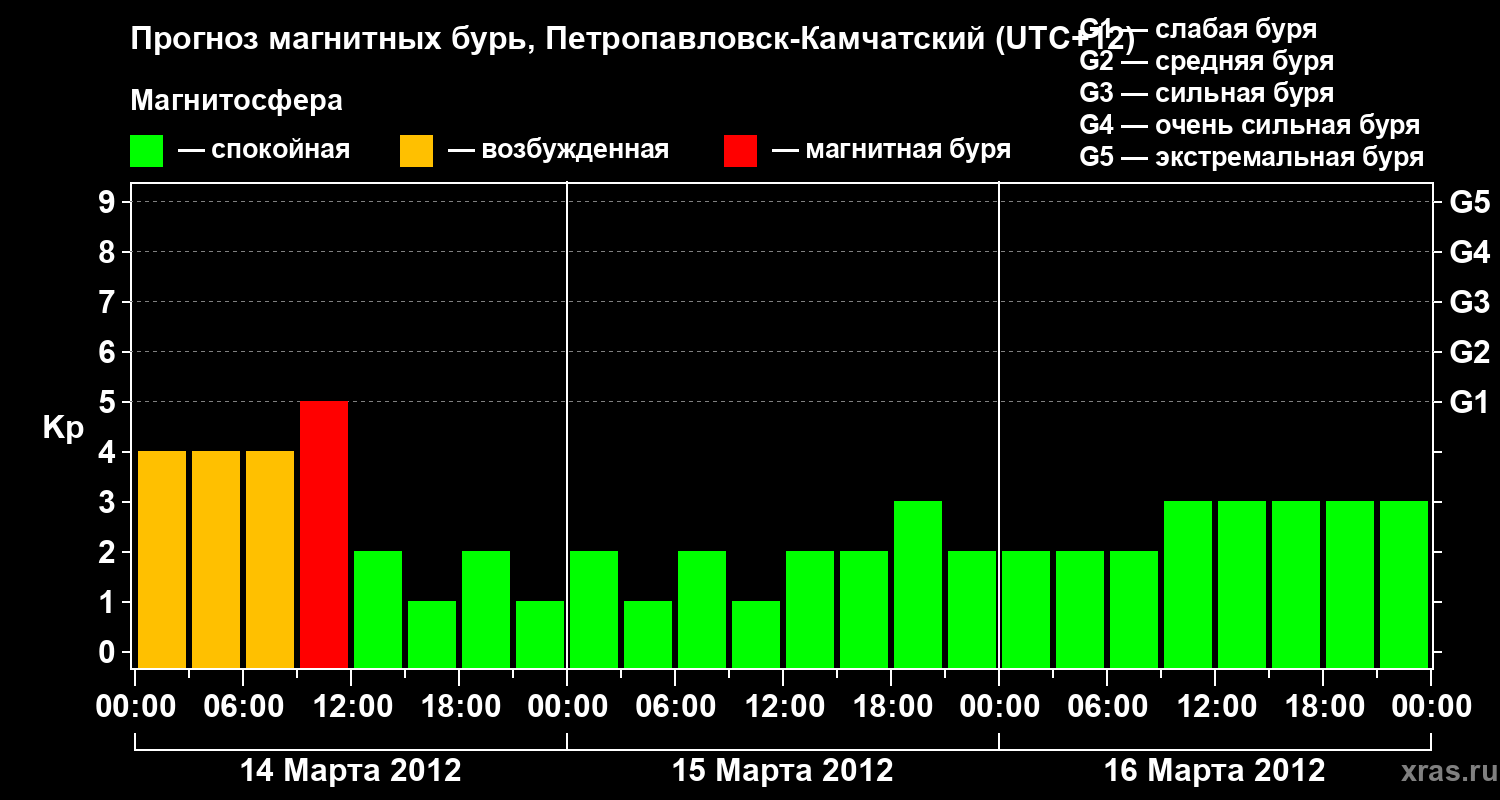Прогноз магнитных бурь Петропавловске-Камчатском — 14 марта 2012 года