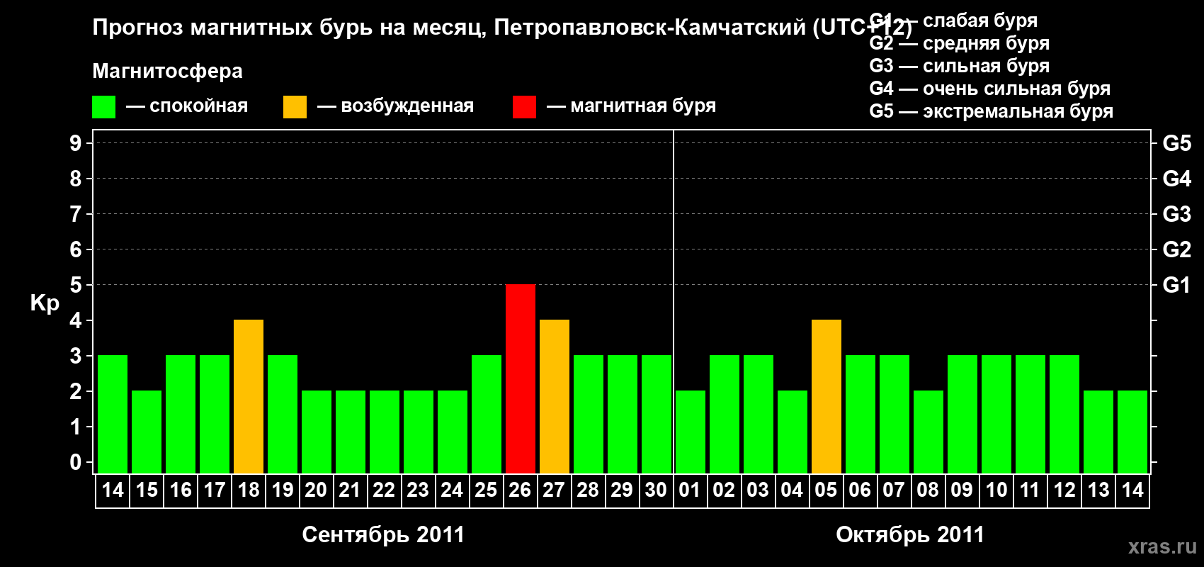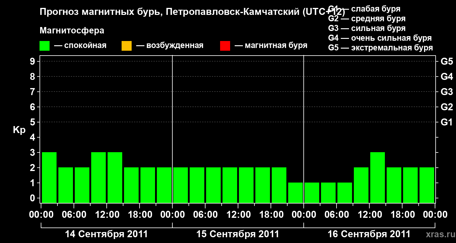 Прогноз магнитных бурь Петропавловске-Камчатском — 14 сентября 2011 года