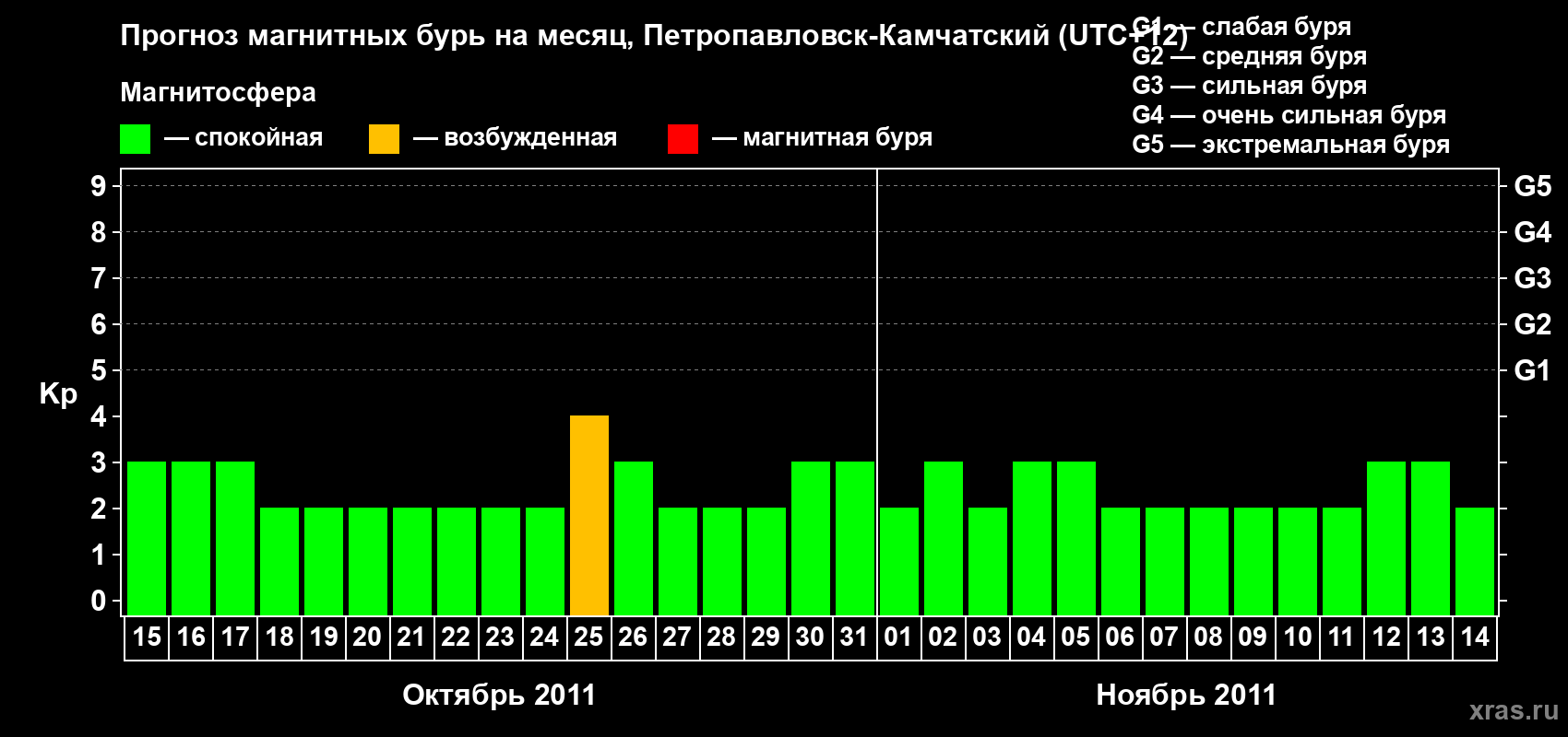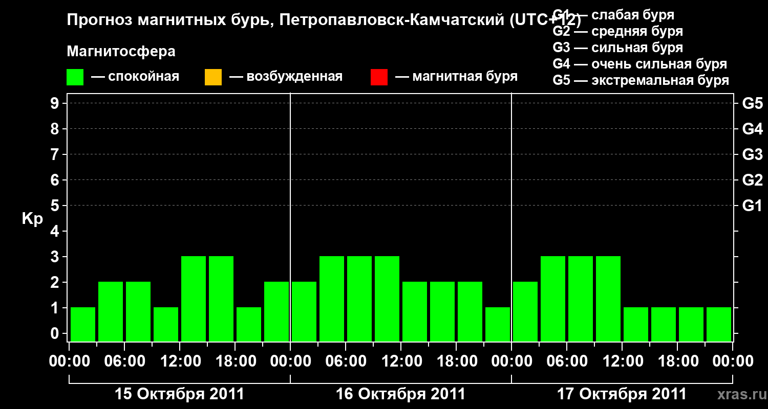 Прогноз магнитных бурь Петропавловске-Камчатском — 15 октября 2011 года