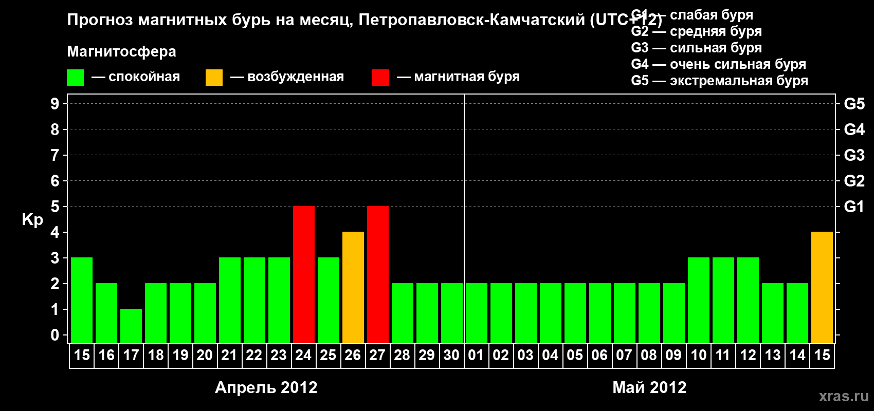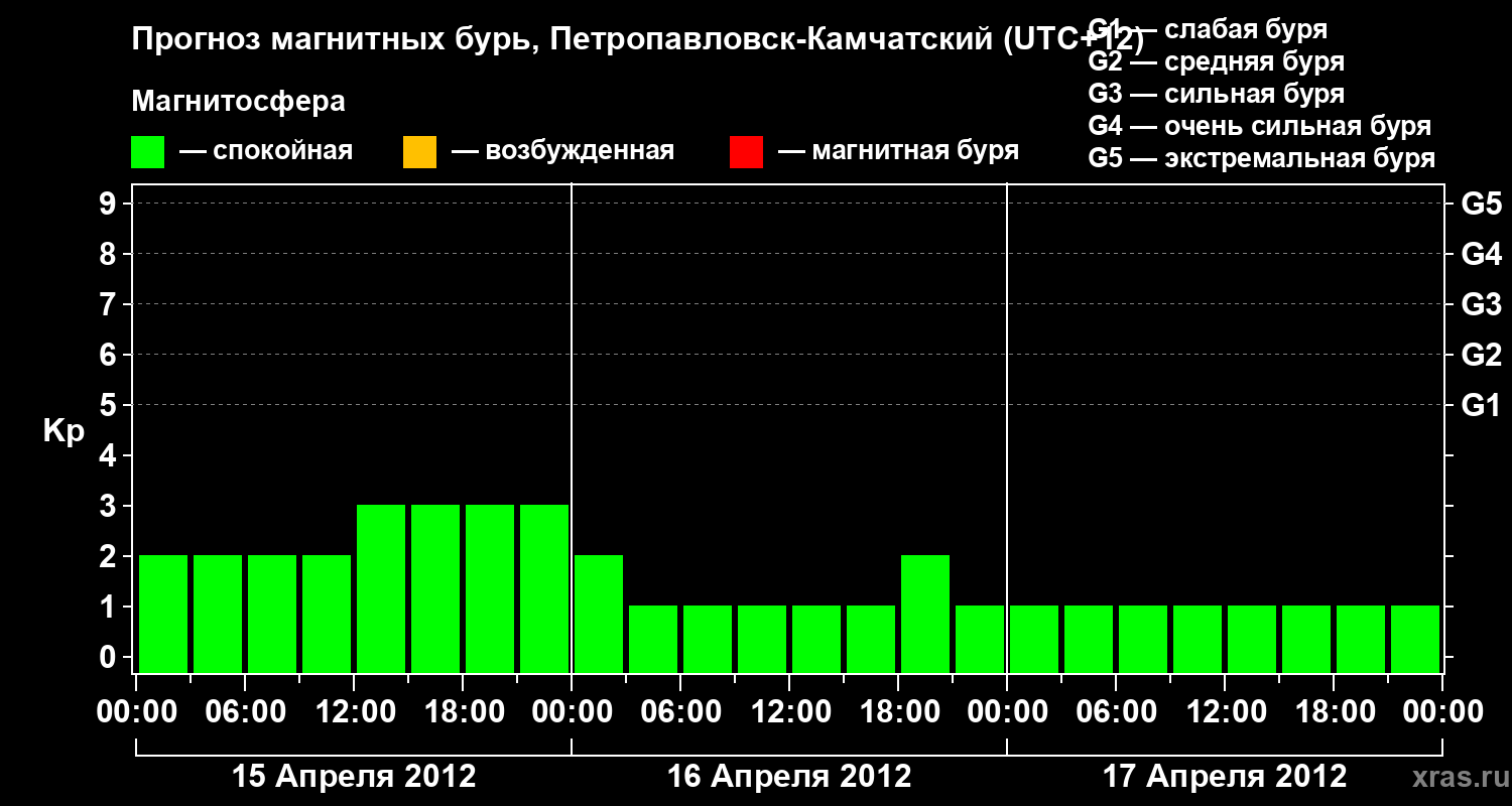 Прогноз магнитных бурь Петропавловске-Камчатском — 15 апреля 2012 года