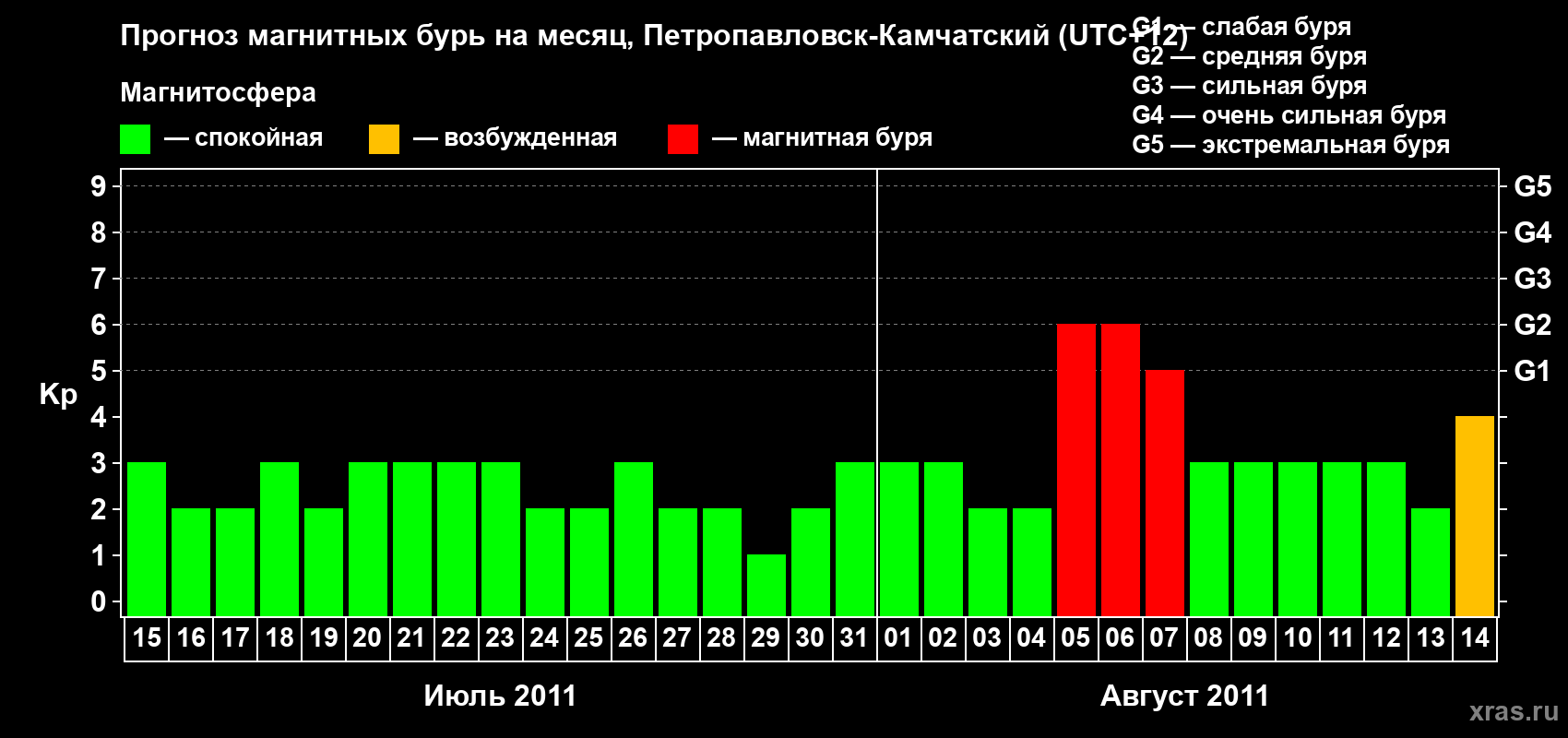 Прогноз магнитных бурь Петропавловске-Камчатском — 15 июля 2011 года
