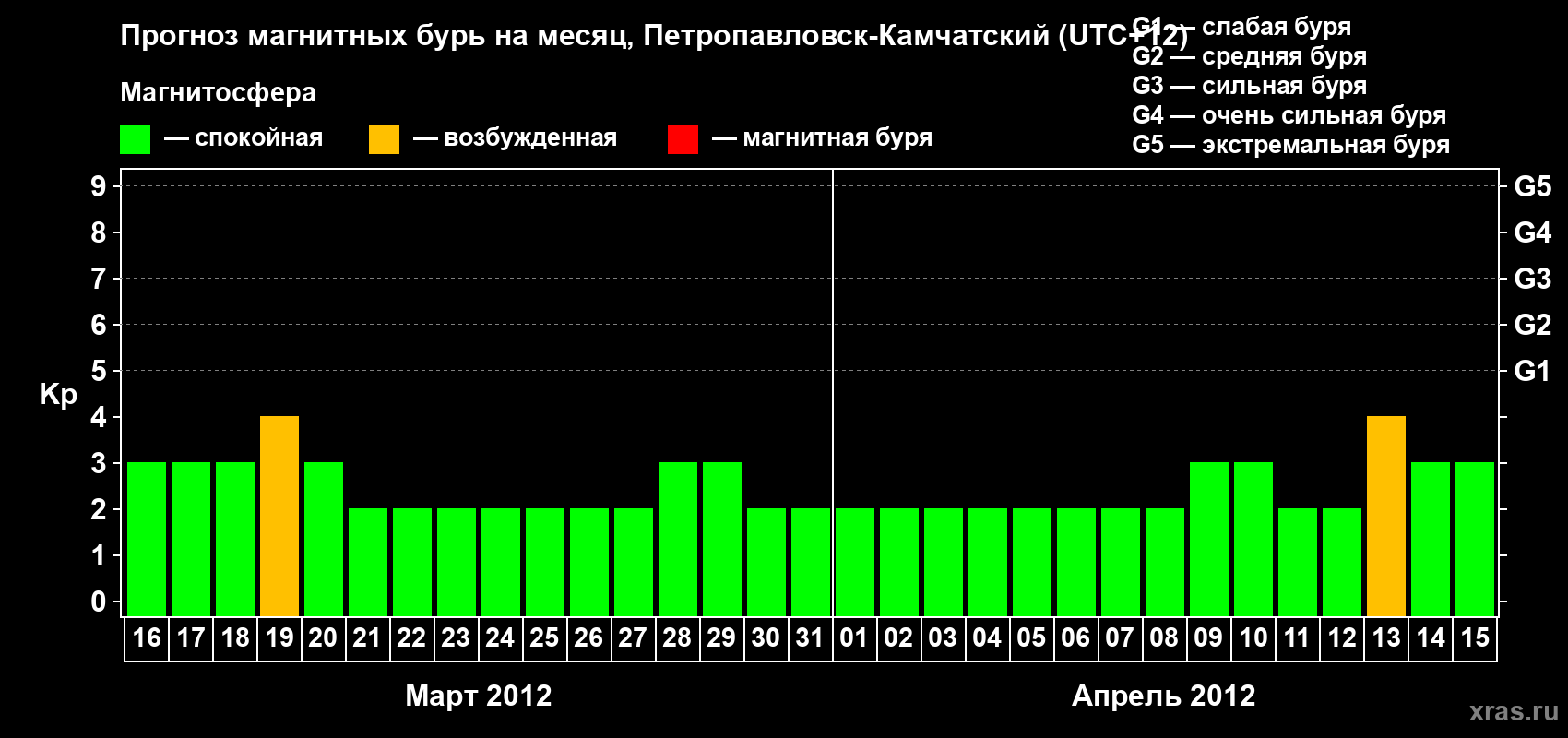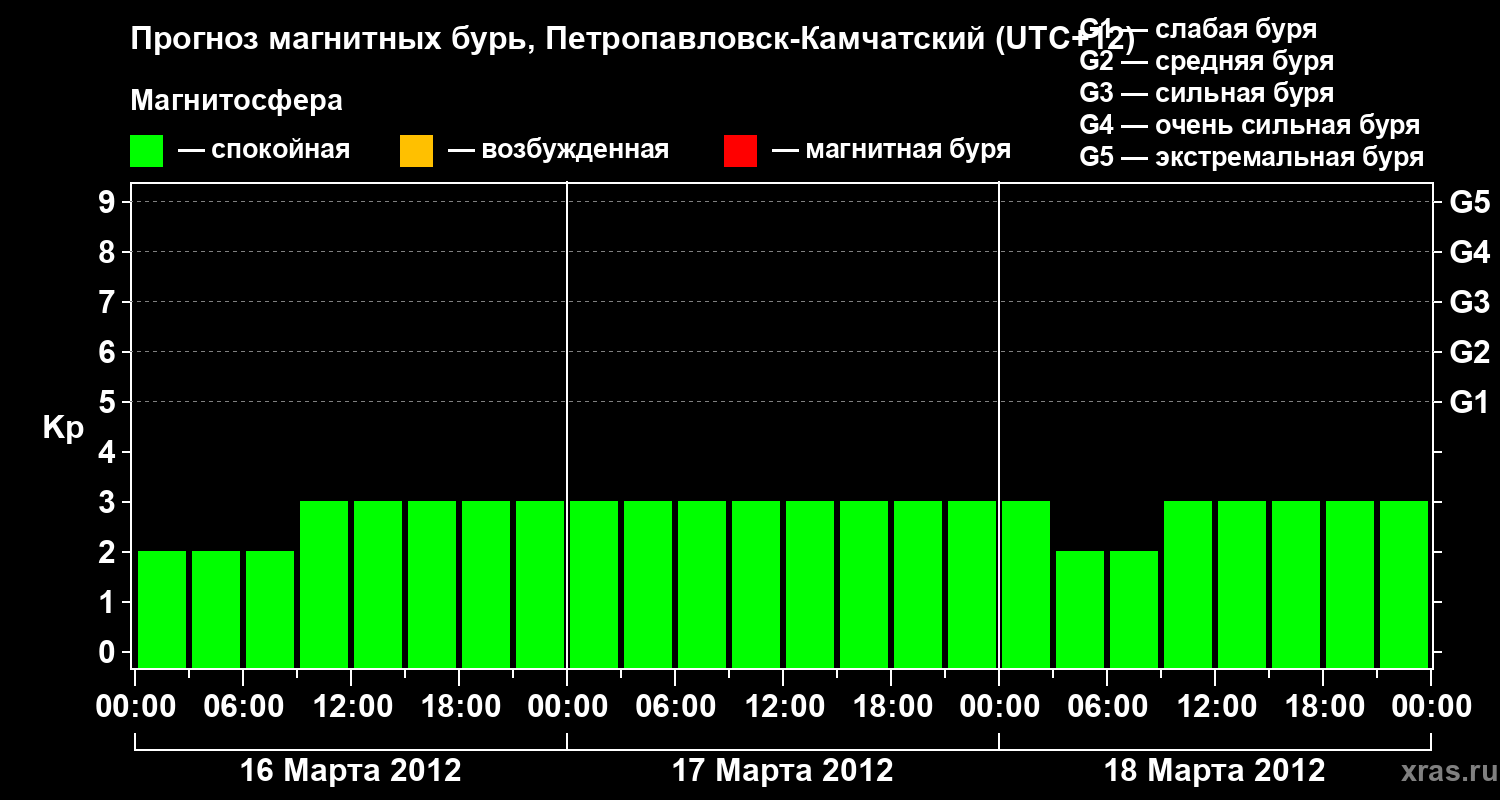 Прогноз магнитных бурь Петропавловске-Камчатском — 16 марта 2012 года