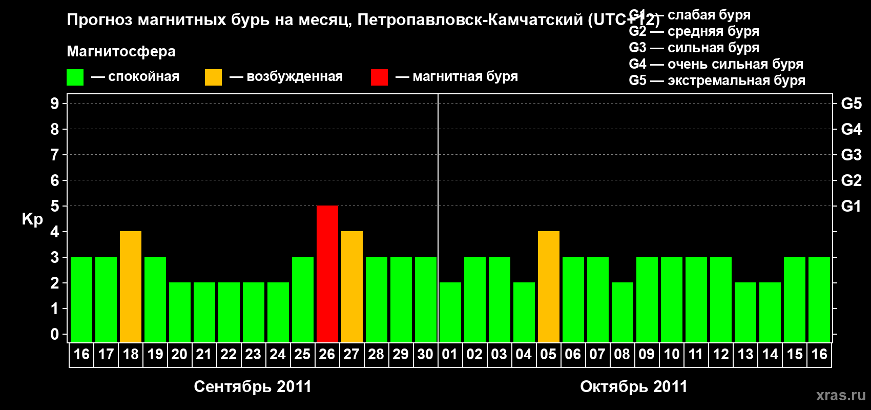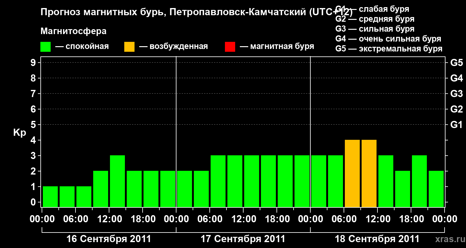 Прогноз магнитных бурь Петропавловске-Камчатском — 16 сентября 2011 года