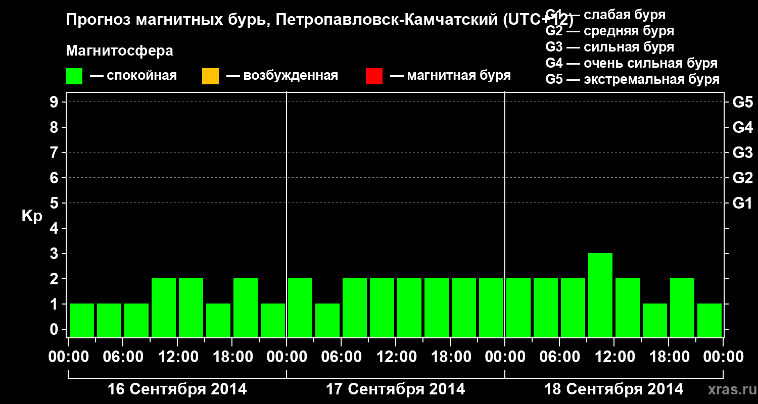 Прогноз магнитных бурь Петропавловске-Камчатском — 16 сентября 2014 года