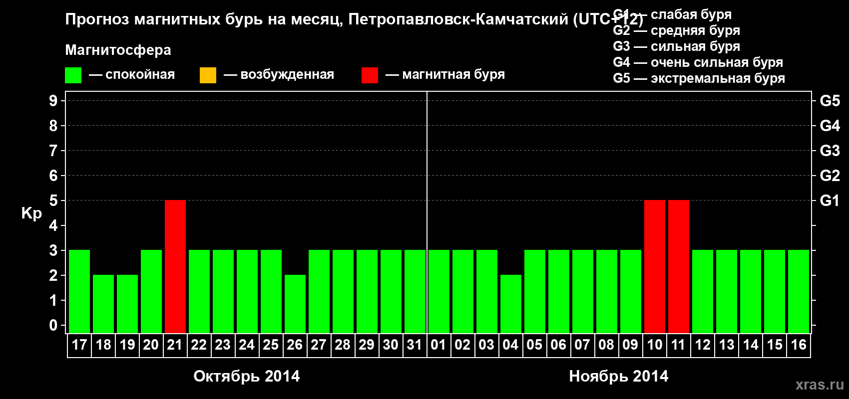 Прогноз магнитных бурь Петропавловске-Камчатском — 17 октября 2014 года