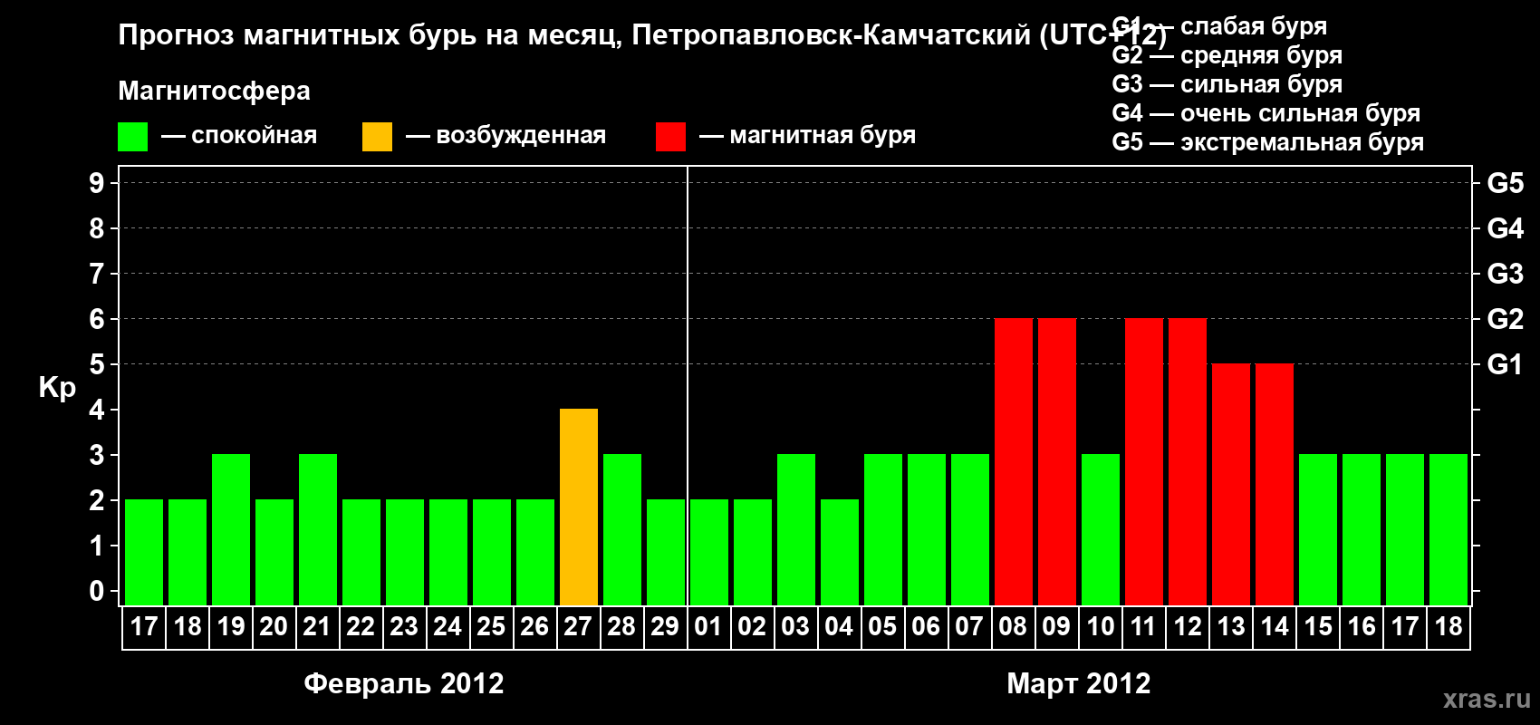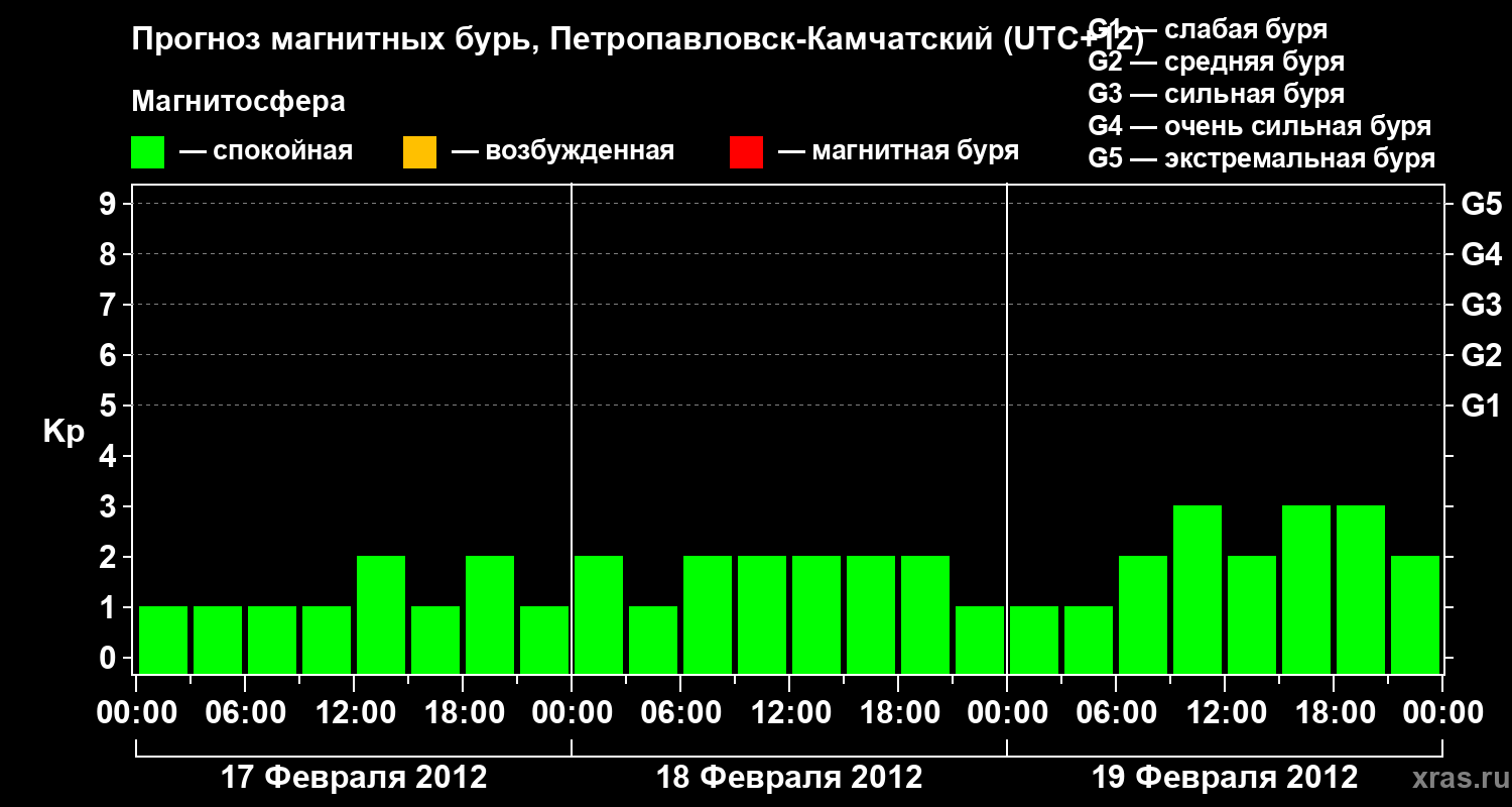 Прогноз магнитных бурь Петропавловске-Камчатском — 17 февраля 2012 года