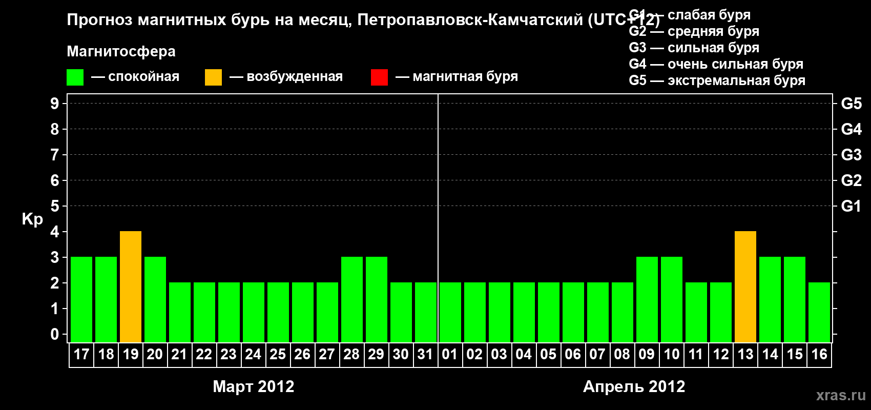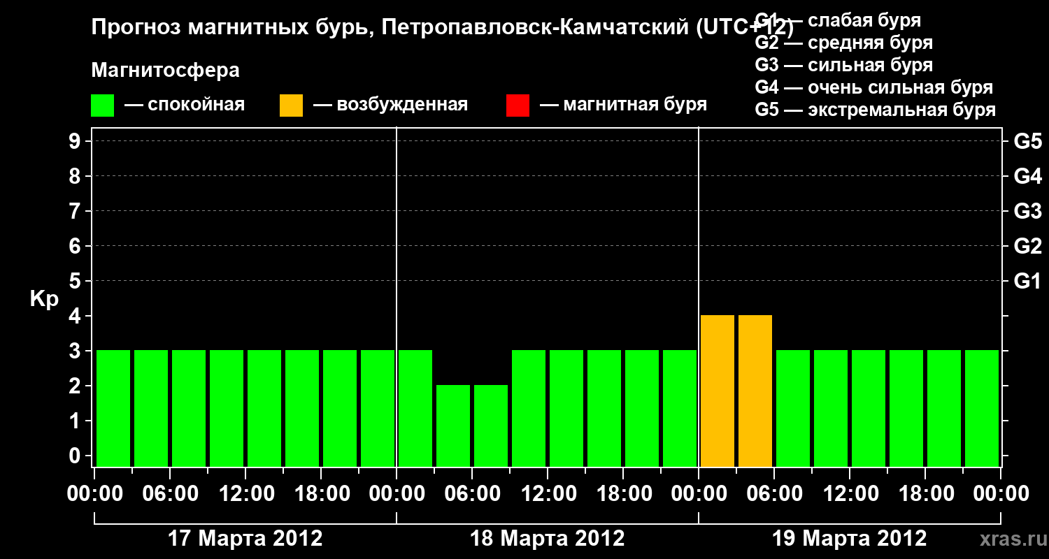 Прогноз магнитных бурь Петропавловске-Камчатском — 17 марта 2012 года